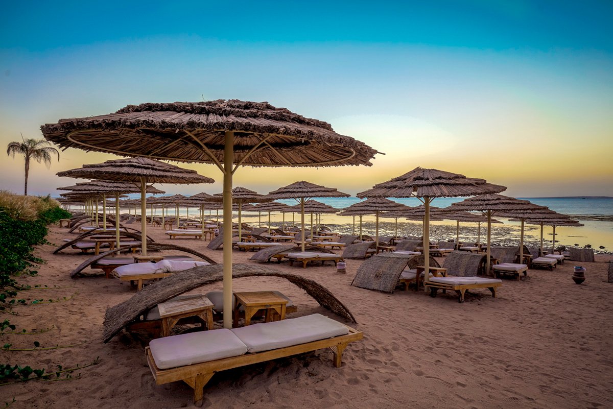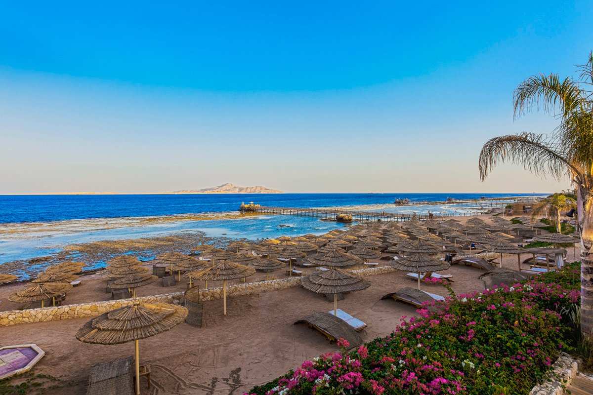 prywatna, piaszczysto-żwirkowa, rafa koralowa, łagodne, miejscami kamieniste zejście do morza, zalecane obuwie ochronne, pomost, bezpośrednio przy hotelu (do 300 m - zależnie od zakwaterowania), bezpłatne parasole, leżaki, materace i ręczniki.