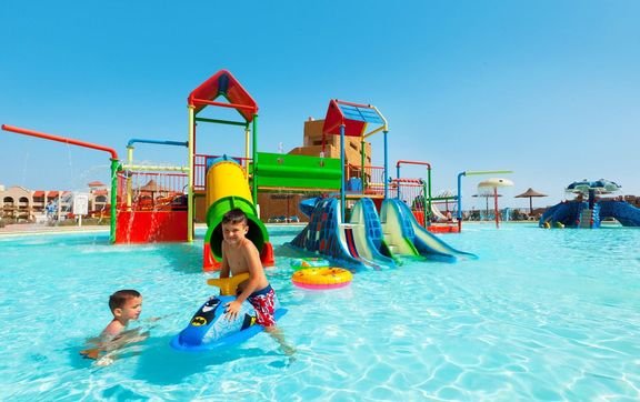 Idealne miejsce na rodzinne wakacje – świetne baseny i aquapark to tylko część atrakcji czekających na miejscu. Do dyspozycji Gości jest aż 8 basenów, w tym basen ze sztuczną falą, 14 zjeżdżalni dla dzieci i 10 zjeżdżalni dla dorosłych. Dodatkowo do pobliskiej plaży kursuje codziennie bezpłatny bus hotelowy. Doskonałym uzupełnieniem wodnych kapieli będą przekąski i napoje serwowane w 8 barach na terenie całego kompleksu i na plaży. Wymarzone miejsce dla miłośników wodnego szaleństwa!