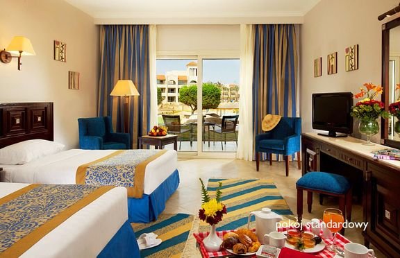 standardowy: 2-os. (możliwość 1 lub 2 dostawek), ok. 36 m², indywidualnie sterowana klimatyzacja, łazienka (wanna lub prysznic, wc; suszarka), telewizja satelitarna, telefon, minibar (1 butelka wody/os./dzień); balkon lub taras (stolik i krzesełka),; rodzinny: 2-os. (możliwość 1 lub 2 dostawek), ok. 46 m², sypialnia i część dzienna, wyposażenie jak w pokoju standardowym; pokój rodzinny za dopłatą