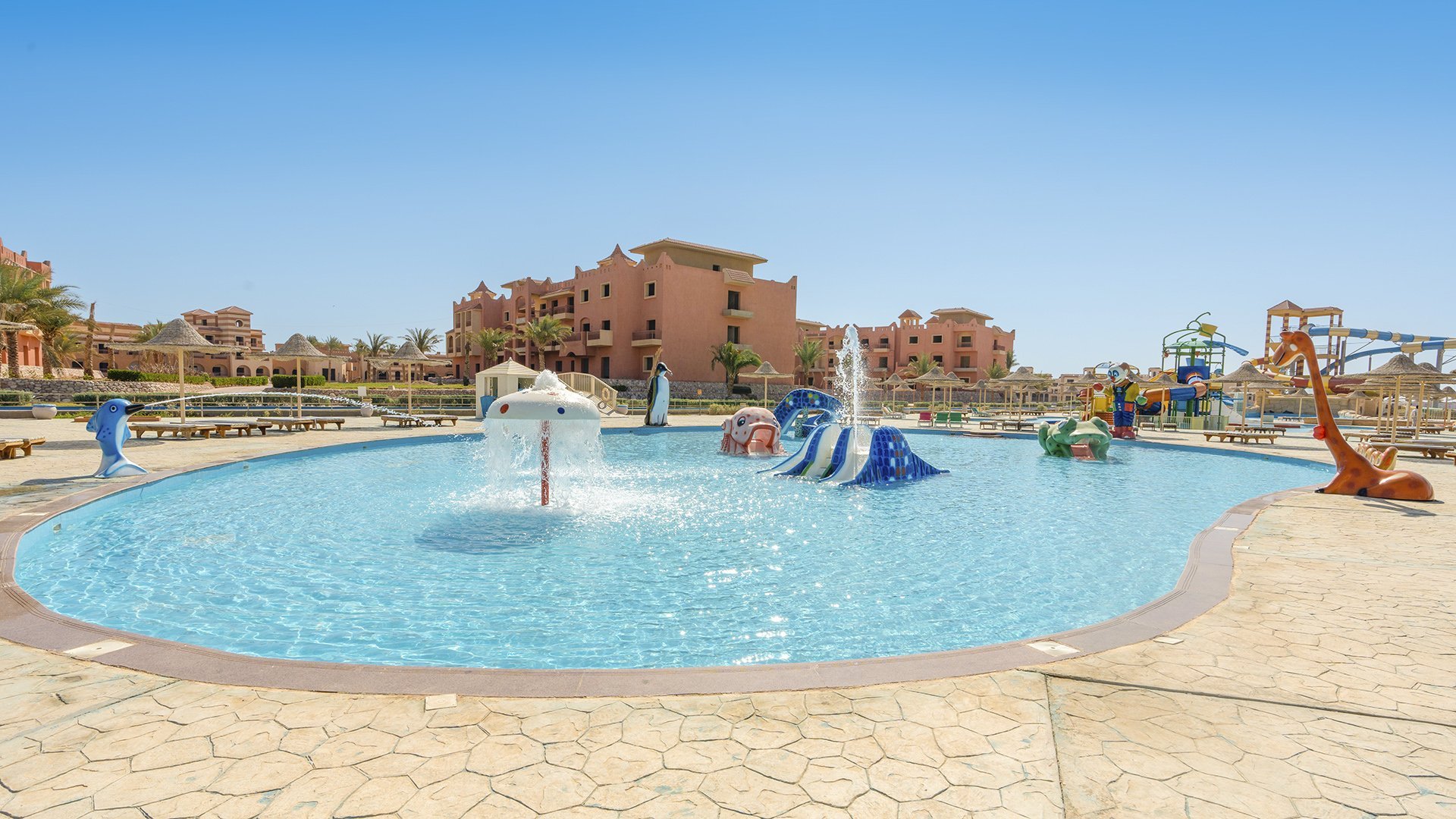 To prawdziwy raj dla całej rodziny! Na rozległym terenie czeka aż 9 basenów oraz aquapark z 31 zjeżdżalniami, które zapewnią mnóstwo emocji i zabawy w wodzie. Dzieci spędzą czas w miniklubie i podczas wesołych animacji, a dorośli mogą w pełni się odprężyć. Miłośnicy aktywności znajdą tu wiele sportowych i rekreacyjnych atrakcji, a każdy dzień przynosi nowe przygody i niezapomniane chwile. Cały pobyt umili znana i lubiana formuła all inclusive, dzięki której możesz delektować się pysznym jedzeniem i napojami bez ograniczeń. Zasłużony urlop czas zacząć!