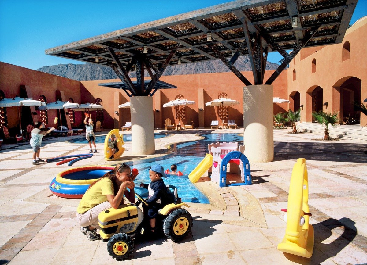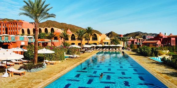 Otoczony imponującymi górami w cynamonowym kolorze i turkusowym morzem jest zatopioną w słońcu zieloną oazą. Czerwone budynki zbudowane w stylu nubijskiej wioski o niskiej zabudowie pięknie komponują się z otoczeniem, a zadbany kompleks basenowy z trzema brodzikami jest ulubionym miejscem na relaks dla całej rodziny. Przestronne i eleganckie pokoje są funkcjonalnie urządzone i bez trudu pomieszczą nawet rodzinę z dwójką dzieci. Obok hotelu piękna, długa plaża z pomostami do nurkowania – doskonała dla wielbicieli sportów wodnych i raf koralowych.