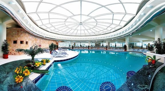 2 baseny, woda słodka: ok. 1800 m² i ok. 350 m², gł. 1-1,6 m, 2 brodziki dla dzieci, woda słodka, każdy ok. 50 m², gł. 0,45 m, basen kryty, podgrzewany w sezonie zimowym, woda słodka, ok. 200 m², gł. 1-1,6 m, kryty brodzik, podgrzewany w sezonie zimowym, woda słodka, ok. 25 m², gł. 0,45 m, przy basenach bezpłatne parasole, leżaki i ręczniki; siatkówka plażowa, koszykówka, rzutki, fitness, plac i pokój zabaw dla dzieci; za opłatą: bilard, centrum nurkowe, centrum spa (płatne): sauna, łaźnia parowa, jacuzzi, masaże.