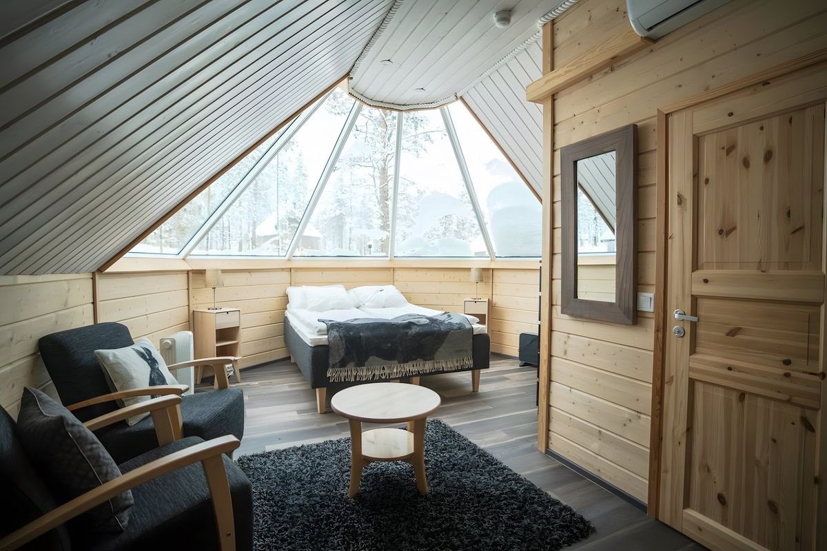 Marzysz o tym, by na własne oczy zobaczyć zorzę polarną? Tutaj masz na to szansę w prawdziwie zimowej scenerii! Zapraszamy do wioski zaprojektowanej w skandynawskim stylu, łącząc komfort z surowością otaczającego krajobrazu. Odpocznij w przytulnych pokojach z oknem umiejscowionym nad łóżkiem, dzięki czemu możesz urządzić polowanie na zorze spod własnej kołdry. Możesz tu zadbać o swoją odporność korzystając na przemian z fińskiej sauny i lodowego basenu, a następnie zrelaksować się w zewnętrznym jacuzzi. Nie możesz pominąć wizyty w restauracji – spróbujesz tu lapońskich przysmaków, które rozpieszczą Twoje kubki smakowe. Zafunduj sobie niezapomniane wspomnienia z północy Finlandii!