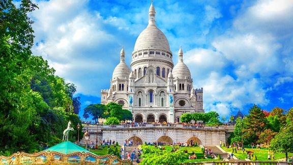 Zbiórka uczestników na lotnisku. Przelot do Paryża. Transfer do hotelu. Zakwaterowanie lub zdeponowanie bagażu w hotelowej przechowalni. Przejazd metrem na Montmartre. Zwiedzanie: bazylika Sacré-Cœur wzniesiona na szczycie wzgórza Montmartre, plac du Tertre – jeden z najbardziej malowniczych zakątków Paryża. Dalej spacer Rue des Saules, gdzie znajduje się legendarne miejsce spotkań paryskiej bohemy – Au Lapin Agile, przez plac Pigalle do placu Blanche ze słynnym kabaretem Moulin Rouge. Powrót do hotelu. Nocleg.