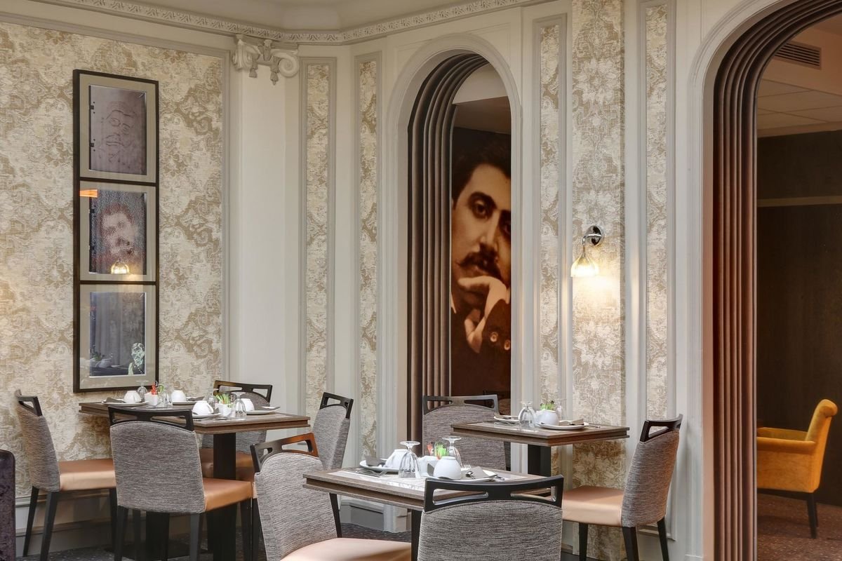 Zaaranżowany w pięknym XIX-wiecznym budynku charakteryzującym się typową paryską architekturą i ciekawym wystrojem, jest świetną bazą wypadową do zwiedzania połączonego ze spokojnym wypoczynkiem. Hotel jest w całości poświęcony Marcelowi Proustowi i jego twórczości, co ma swoje odzwierciedlenie w każdym detalu, a Goście doceniają to miejsce za wysoki poziom usług, fantastyczną obsługę, wygodne, jasne pokoje i odprężający klimat. Bliskość metra umożliwia łatwy dostęp do najważniejszych atrakcji, a po dniu odkrywania uroków Paryża polecamy zrelaksować się w hotelowym lobby rozbrzmiewającym muzyką klasyczną.