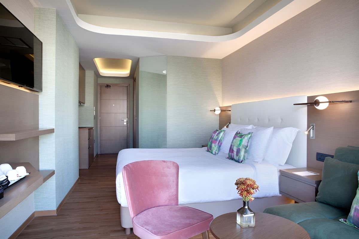 Nowoczesny, typowo miejski hotel blisko ścisłego centrum Aten to idealne miejsce na Twoje wakacje! Z łatwością dotrzesz stąd do najciekawszych i najsłynniejszych atrakcji stolicy – wiele z nich znajduje się w zasięgu spaceru, a do pozostałych bez trudu dojedziesz komunikacją publiczną. Komfortowe, przestronne pokoje wyposażone we wszystkie udogodnienia pozwalają w pełni się odprężyć i naładować baterie na kolejny dzień. Dla aktywnych dostępna jest także siłownia, a fantastyczny taras na dachu, będący wizytówką hotelu, stanowi spokojne miejsce na wieczorny relaks!