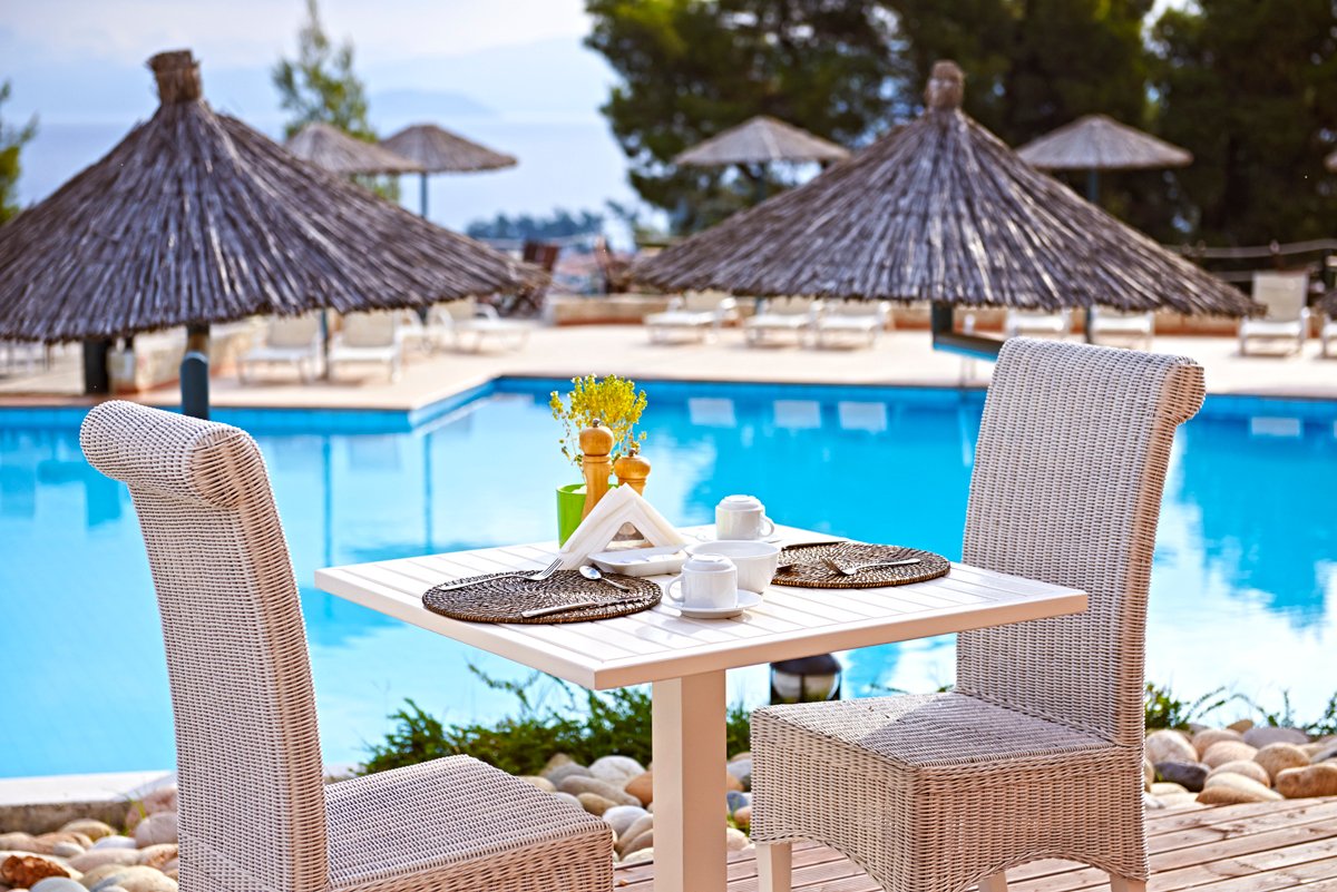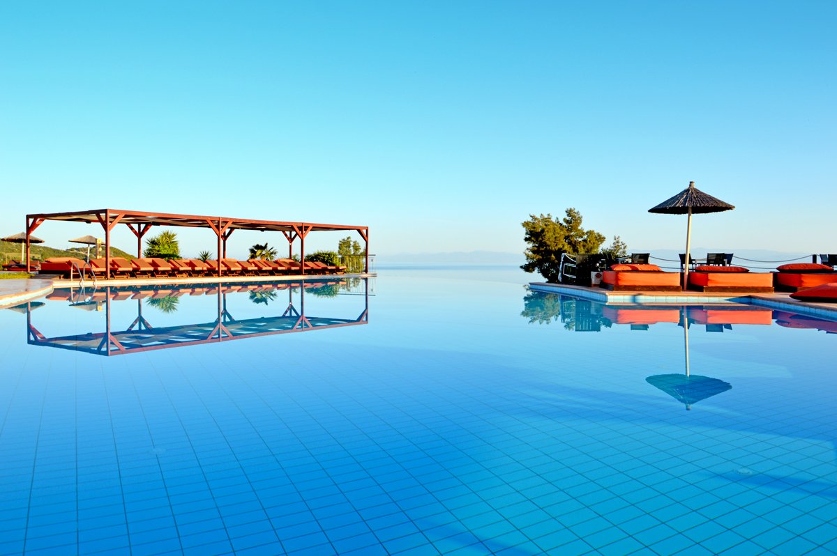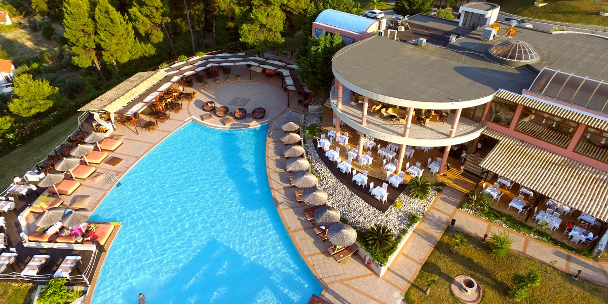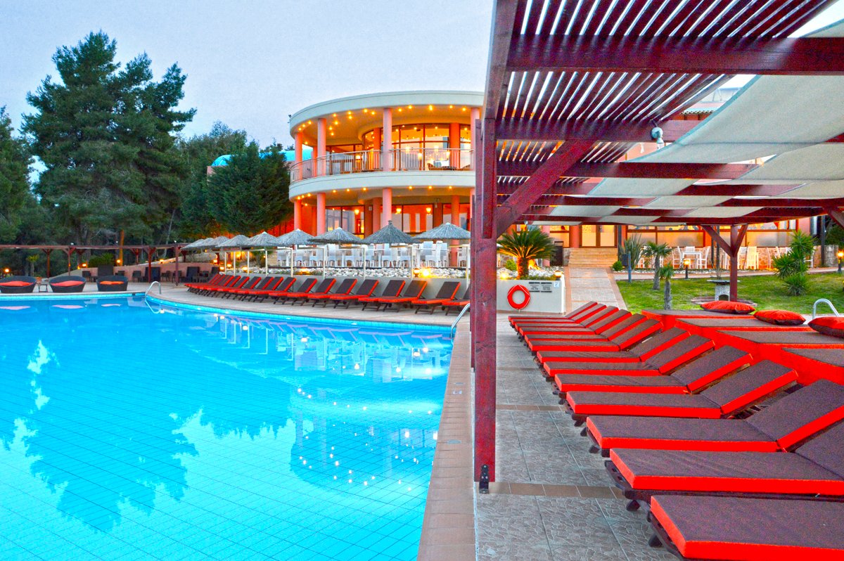 Położony w zielonym ogrodzie, na wzgórzu z fantastycznym widokiem na zatokę Toroneos i Pefkochori, jest doskonałym miejscem dla osób szukających spokojnego odpoczynku w eleganckim otoczeniu. Do dyspozycji Gości jest basen infinity, brodzik dla dzieci, 3 restauracje i 2 bary. Hotel oferuje komfortowe pokoje standardowe i junior suite z prywatnym basenem. Warto wybrać się do centrum miasteczka i skosztować greckich przysmaków w jednej z licznych tawern.