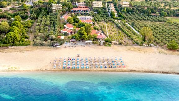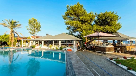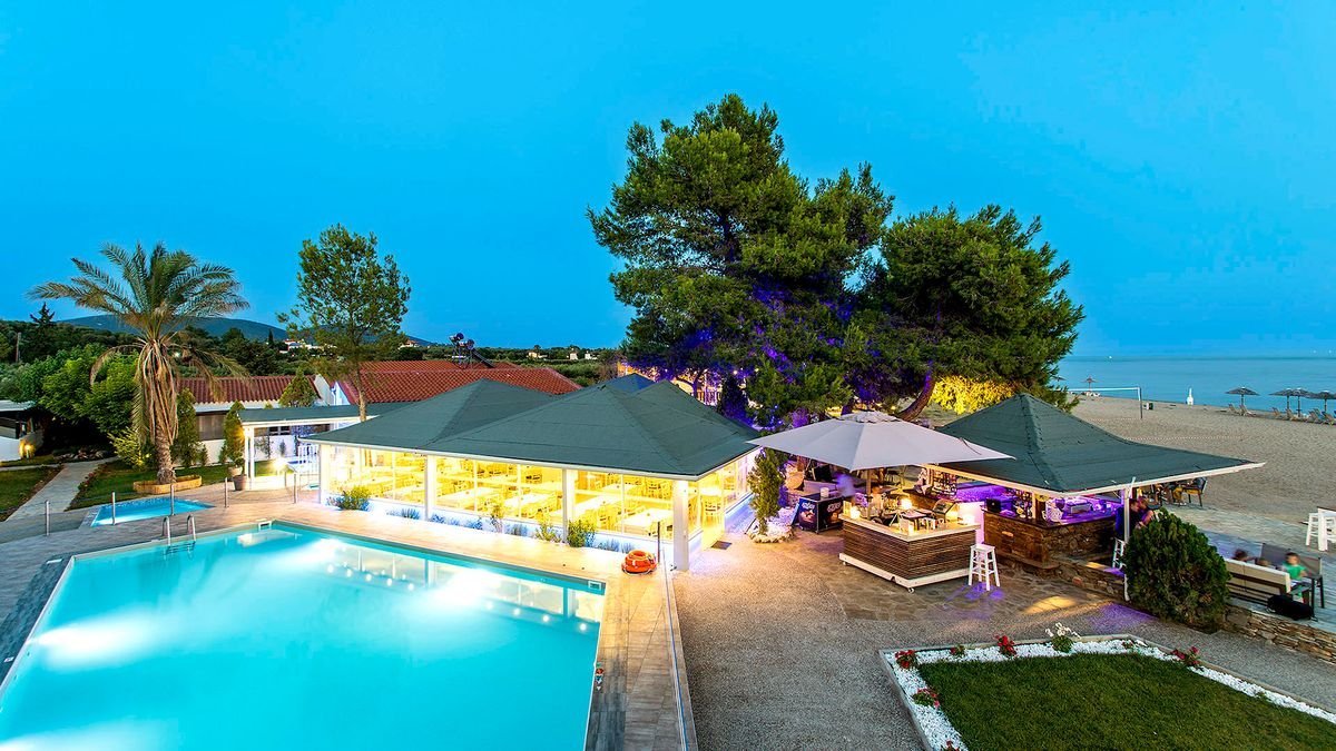 Prawdziwa oaza spokoju – położony w cichej okolicy, wśród zielonych sosen, jest idealnym pomysłem na romantyczne wakacje z ukochaną osobą, wspólny urlop z dziećmi czy wyjazd z przyjaciółmi. Hotel może pochwalić się wspaniałą, piaszczystą plażą z bezpłatnym serwisem, która uznawana jest za jedną z najpiękniejszych na Półwyspie Chalkidiki – doskonałe miejsce na beztroski odpoczynek na leżaku i złapanie wakacyjnej opalenizny. Grecja słynie z pysznej kuchni, więc koniecznie wybierz się do hotelowej restauracji, by przy kieliszku wina skosztować świeżych owoców morza, podziwiając przy tym piękne widoki na zatokę. Spróbuj orzeźwiających koktajli w ramach formuły all inclusive, popływaj w basenie lub odpręż się podczas masażu i naładuj baterie na kolejny dzień, pełen wrażeń i słońca!