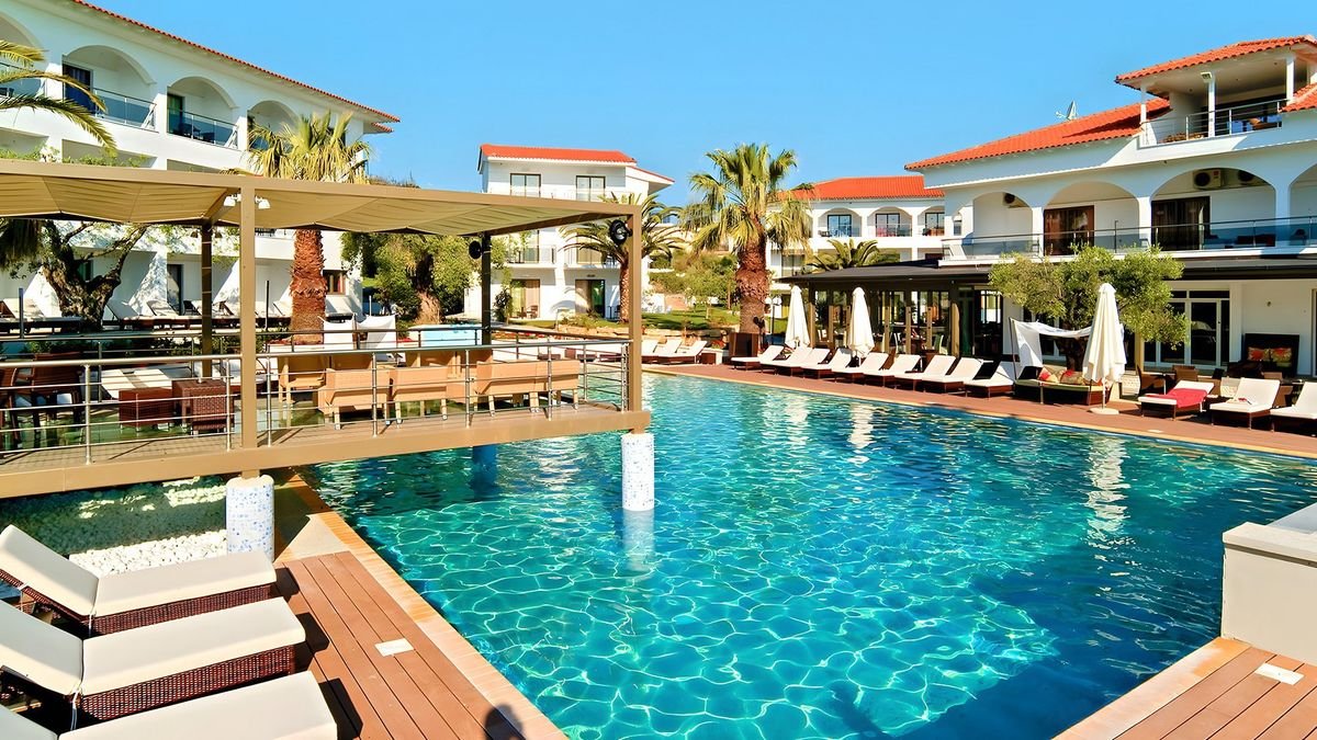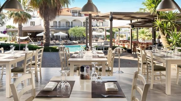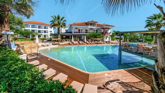 Świetne miejsce na beztroski wypoczynek w rodzinnym gronie! Elegancki i zadbany, z jasnymi budynkami, które wspaniale współgrają z zielonym ogrodem, został zaprojektowany w lokalnym stylu. Znajdziesz tu basen z wydzieloną częścią dla najmłodszych, a dla osób pragnących zadbać o formę podczas wakacji, czeka siłownia. Do plaży z krystalicznie czystą wodą wystarczy kilka minut spaceru, a tam greckie słońce otuli Cię ciepłymi promieniami. Goście chwalą sobie sympatyczną i profesjonalną obsługę, zawsze chętną do pomocy. Przyjedź i przekonaj się sam!