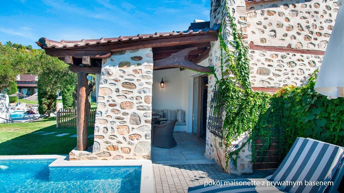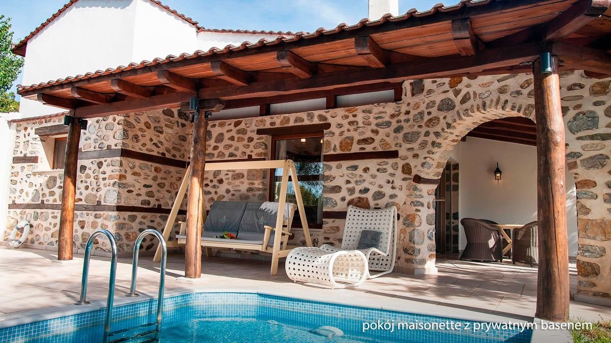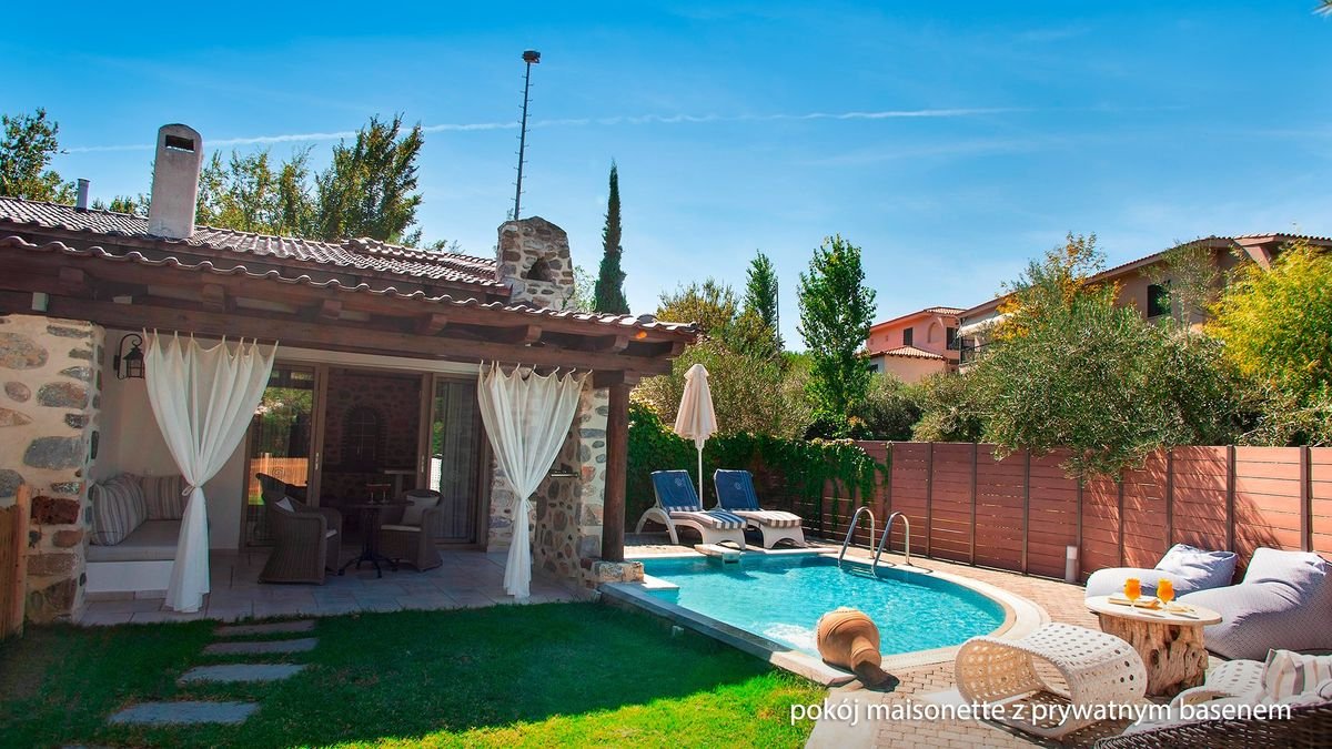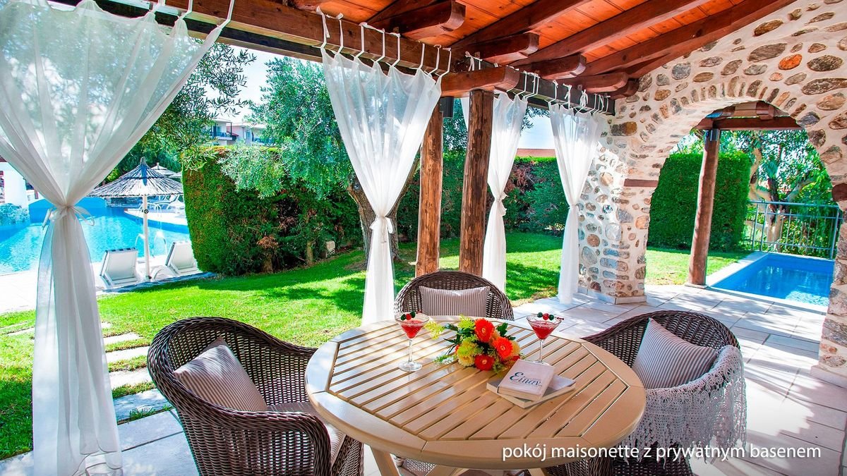 Kameralny, położony wśród śródziemnomorskiej roślinności, jest doskonałym wyborem dla wszystkich ceniących spokój i chcących spędzić urlop z dala od zgiełku. Zaprojektowany na wzór greckiej wioski, tworzy kompleks z hotelem Acrotel Athena Pallas, z którego udogodnień mogą korzystać Goście. Został zbudowany z tradycyjnych materiałów, z zastosowaniem nowoczesnych technologii i dodatków, a dekoracją i kolorystyką nawiązuje do lokalnej architektury. Na miejscu jest duży basen, restauracje serwujące smaczną kuchnię lokalną i międzynarodową oraz kilka barów, w tym na pobliskiej plaży, gdzie dostępne są bezpłatne parasole i leżaki. Do wyboru są przestronne pokoje maisonette oraz pokoje w prywatnym basenem – idealne na totalny relaks i wyciszenie!