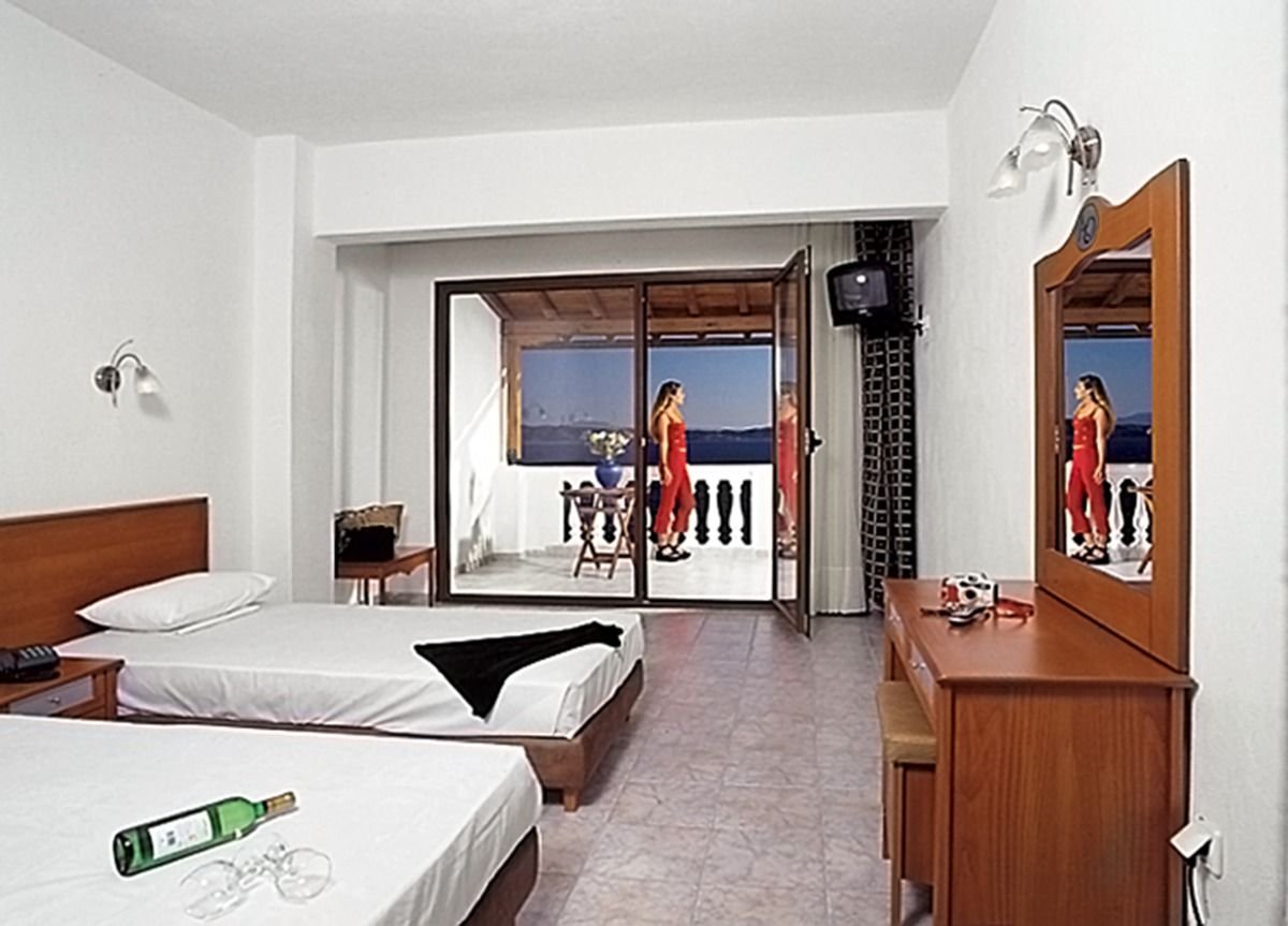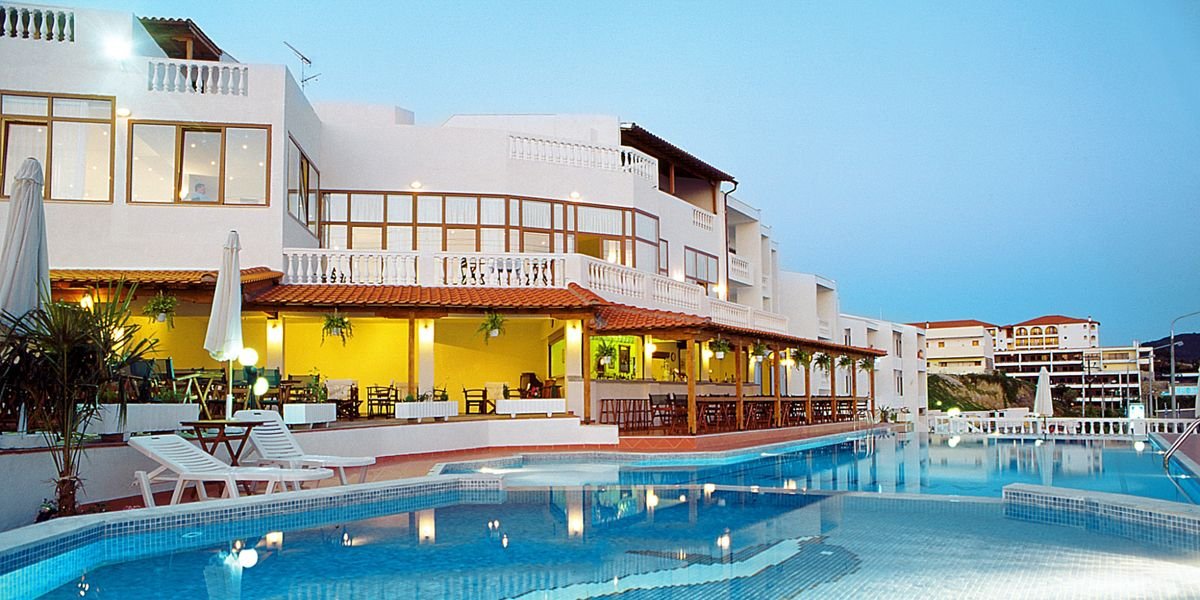 trzygwiazdkowy, zbudowany w 2001 r., 80 pokoi, kilka budynków, 2 piętra, lobby, całodobowa recepcja; restauracja główna – dania w formie bufetu, dostępne foteliki dla dzieci, tawerna Elia Tomata – à la carte, kuchnia śródziemnomorska, owoce morza; bar przy basenie i bar na plaży; minimarket; taras z widokiem na morze, bezpłatny internet bezprzewodowy; za opłatą: kawiarenka internetowa (ok. 3 EUR/godz.), sejf w recepcji, room-service; na terenie hotelu występują schody i różnice poziomów – nie polecany osobom z ograniczeniami ruchowymi; akceptowane karty kredytowe: Visa, MasterCard.