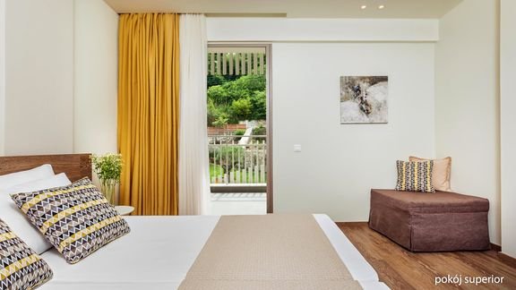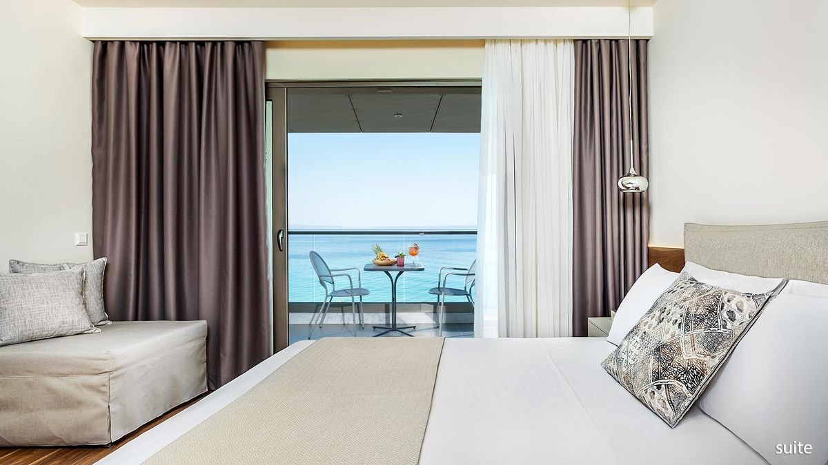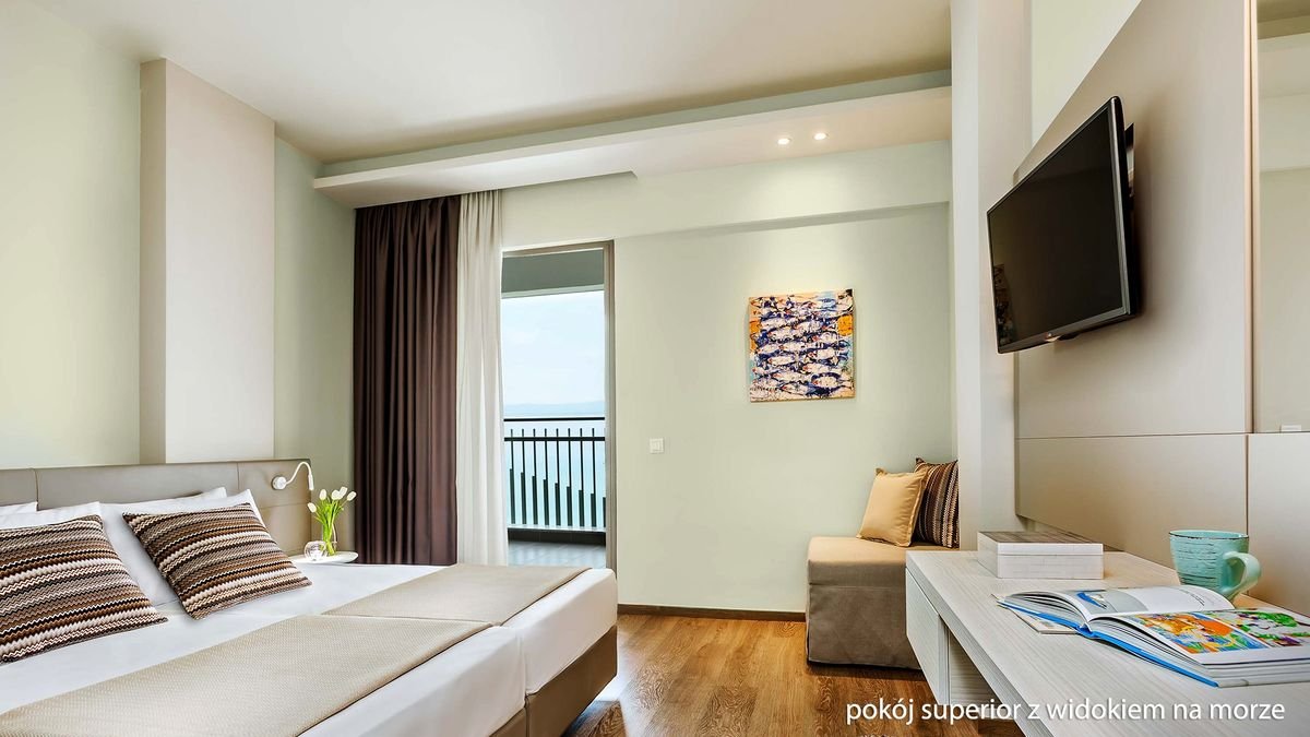 superior: 2-os. (możliwość 1 dostawki), ok. 21 m², indywidualnie sterowana klimatyzacja, łazienka (prysznic, wc; suszarka, zestaw minikosmetyków, kapcie), internet bezprzewodowy, telewizja satelitarna, telefon, minibar (na zamówienie, płatny), sejf, czajnik elektryczny, menu poduszkowe; balkon (stolik i krzesełka), widok na ogród; widok na morze za dopłatą; deluxe: 2-os. (możliwość 1 dostawki), ok. 21 m², wyposażenie jak w pokoju standardowym, dodatkowo: minibar, butelka wina na powitanie, zestaw do kawy/herbaty; balkon (stolik i krzesełka), widok na ogród; widok na morze za dopłatą; suite: 2-os. (możliwość 2 dostawek), ok. 43 m², 2 łazienki, pokój dzienny i sypialnia, wyposażenie jak w pokoju deluxe, dodatkowo ekspres do kawy Nespresso Cafe; balkon (stolik i krzesełka), widok na morze.
