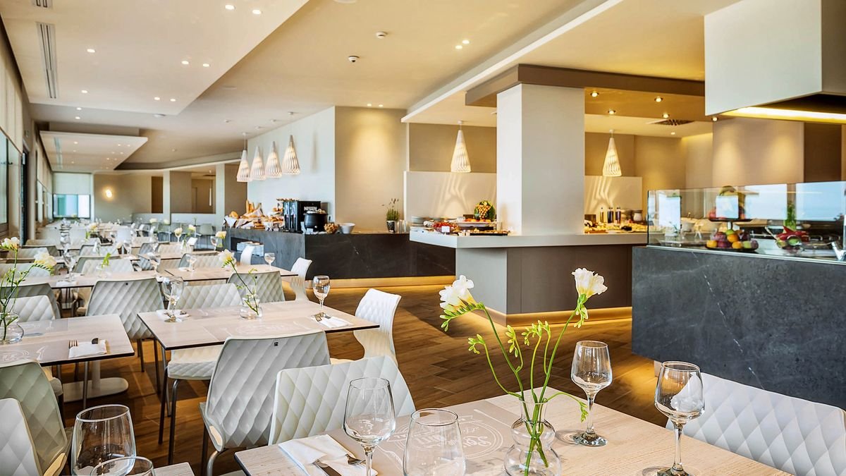 pięciogwiazdkowy, całkowicie odnowiony w 2018 r., kameralny i nowoczesny, 126 pokoi, 5 pięter, 1 budynek, winda, eleganckie lobby, całodobowa recepcja, restauracja – dania w formie bufetu (śniadanie: 7.30-10.00, kolacja: 19.00-21.00), kuchnia lokalna i śródziemnomorska, dostępne menu dla dzieci, restauracja Greco’s – à la carte, owoce morza, bar w lobby, Fresco Bio Healthy Bar przy basenie – świeże soki i niskokaloryczne posiłki; kaplica, sala konferencyjna dla ok. 50 osób; taras z widokiem na morze, ogród; bezpłatny internet bezprzewodowy; za opłatą: room-service (8.00-20.00), opiekunka do dziecka (na zamówienie), pralnia, parking, wypożyczalnia samochodów i rowerów; akceptowane karty kredytowe: Visa, MasterCard, Maestro, UnionPay, Discover.