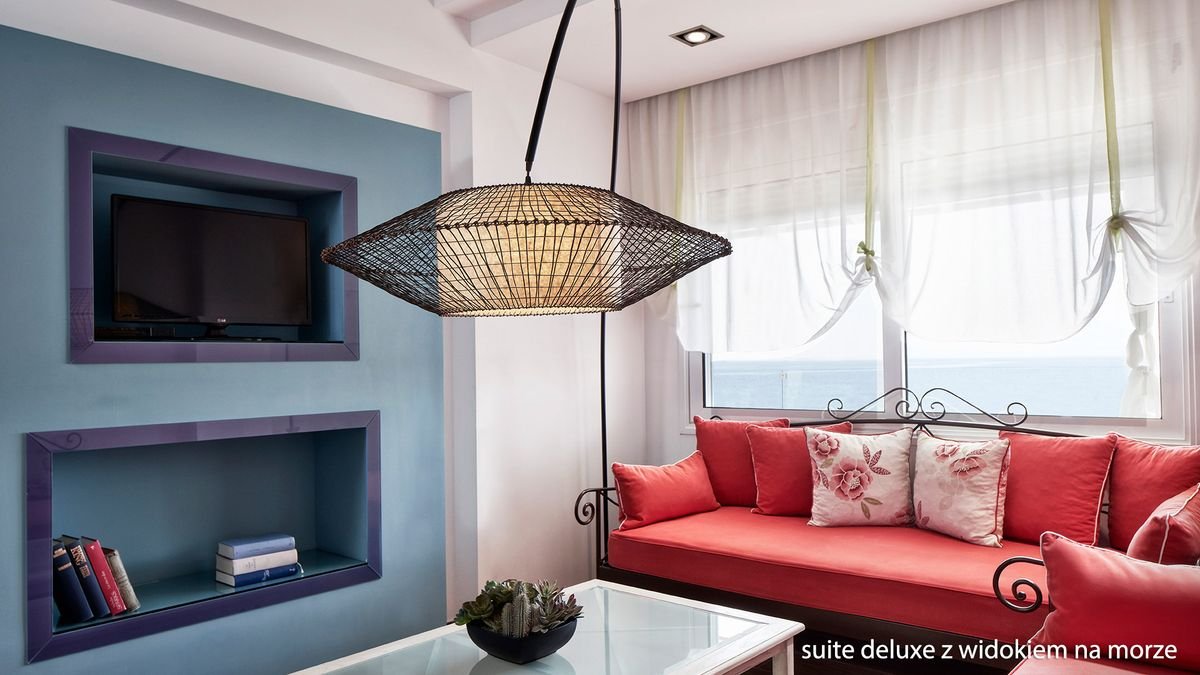 standardowy z widokiem na morze: 2-os., ok. 22-24 m², elegancki, zadbany, praktycznie urządzony, centralnie sterowana klimatyzacja, łazienka (prysznic, wc; suszarka), internet bezprzewodowy, telewizja satelitarna, telefon, lodówka, zestaw do kawy/herbaty, sejf, moskitiery, minibar (na zamówienie, za opłatą); balkon lub taras (stolik i krzesełka), widok na morze; junior suite: 2-os. (możliwość 1 dostawki), ok. 35-38 m², wyposażenie jak w pokoju standardowym; dodatkowo: szlafrok i kapcie; łóżeczko dla dziecka do lat 2 na zamówienie; widok na basen lub ogród; suite deluxe z widokiem na morze: 2-os. (możliwość 2 dostawek – rozkładana sofa), dwa pomieszczenia, ok. 50 m²; wyposażenie jak w pokoju standardowym; dodatkowo: drugi telewizor, ekspres do kawy, szlafrok, kapcie, odtwarzacz DVD/CD, wanna w łazience; pokoje: junior suite i suite deluxe z widokiem na morze za dopłatą.
