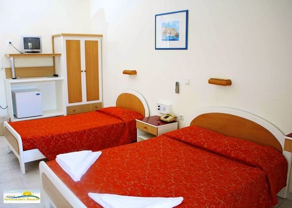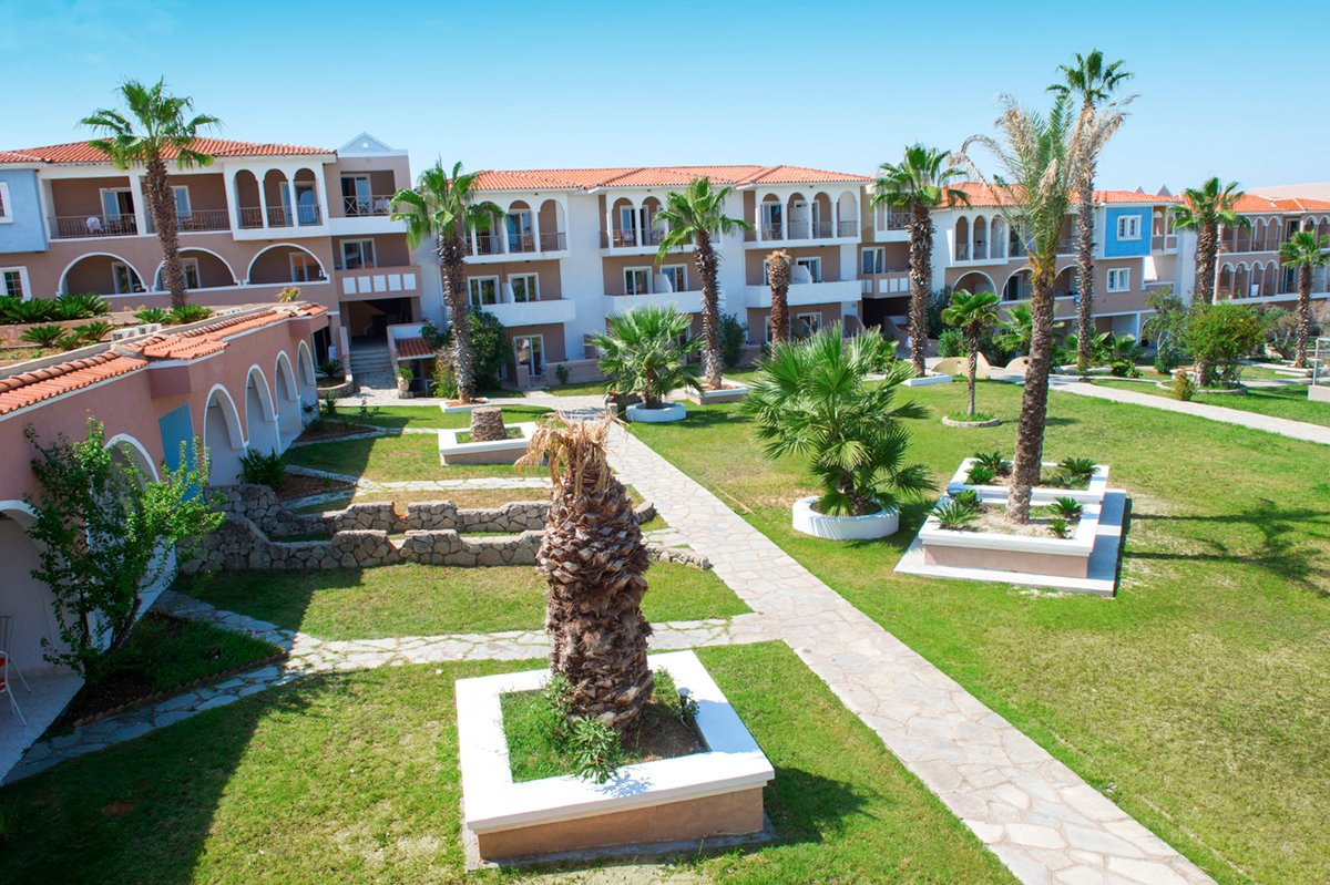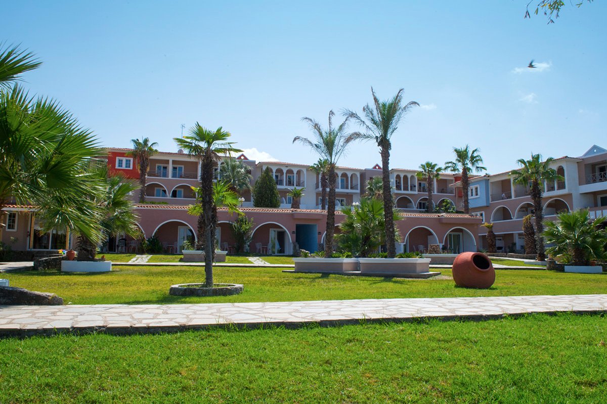 czterogwiazdkowy, zbudowany w 1990 r., częściowo odnowiony w 2010 r., 220 pokoi, 10 budynków, 2 piętra, przestronne lobby, całodobowa recepcja, restauracja – dania w formie bufetu, kuchnia grecka i międzynarodowa, dostępne foteliki dla dzieci, dania wegetariańskie, bar przy basenie i na plaży (wykluczony z all inclusive); minimarket, sklep z pamiątkami, parking; taras z widokiem na morze, ogród, bezpłatny internet bezprzewodowy w lobby; za opłatą: sejf w recepcji (ok. 3 EUR/dzień), wypożyczalnia rowerów; na terenie hotelu występują schody i różnice poziomów – niepolecany osobom z ograniczeniami ruchowymi; akceptowane karty kredytowe: Visa, MasterCard, American Express, Diners Club.