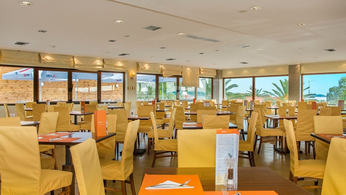 śniadanie (7.30-10.00), późne śniadanie (10.00-11.00), obiad (12.30-14.30), kolacja (19.00-21.30) w formie bufetu w restauracji głównej; przekąski w barze przy basenie (10.30-19.30); napoje bezalkoholowe, kawa, herbata i lokalne napoje alkoholowe w wyznaczonym barze (10.00-24.00); wymagane noszenie opasek all inclusive.
