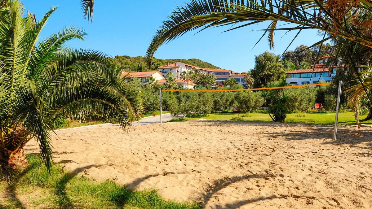 basen, nieregularny kształt, słodka woda, ok. 500 m², gł. 1-3 m, wydzielona część dla dzieci, gł. 0,4 m, przy basenie bezpłatne parasole i leżaki, ręczniki (depozyt: ok. 10 EUR/ręcznik), basen relaksacyjny, dla dorosłych, kwadratowy kształt, słodka woda, ok. 20 m², gł. 1,2 m; kryty basen w centrum spa, nieregularny kształt, słodka woda, ok. 50 m², gł. 1,3 m; tenis stołowy, boisko do koszykówki, boisko do siatkówki, mini boisko do piłki nożnej, kort tenisowy z wypożyczalnią sprzętu (depozyt: 10 EUR), siłownia; plac i pokój zabaw dla dzieci, miniklub (4-12 lat), w wysokim sezonie raz w tygodniu dyskoteka przy basenie, okazjonalnie animacje dla dorosłych i dla dzieci: w wysokim sezonie 2 razy w tygodniu wieczory tematyczne (wieczór grecki, pokazy magików); za opłatą: centrum spa: sauna, łaźnia, thalassoterapia, aromaterapia, zabiegi pielęgnacyjne, masaże, solarium, siłownia; zabiegi w spa płatne.