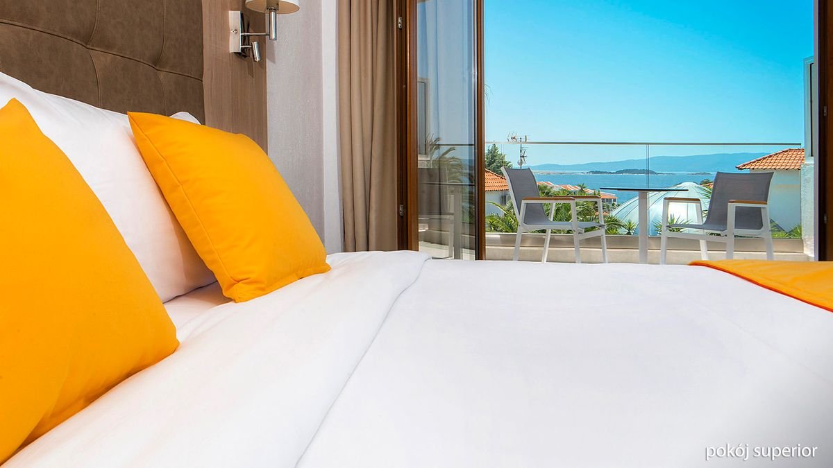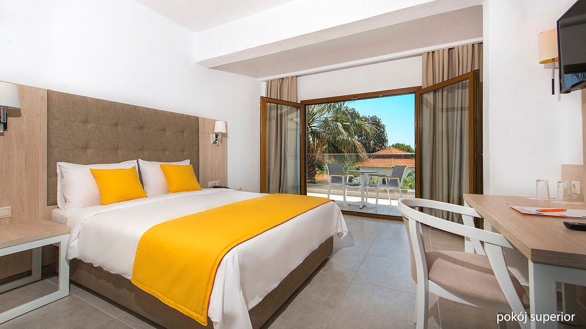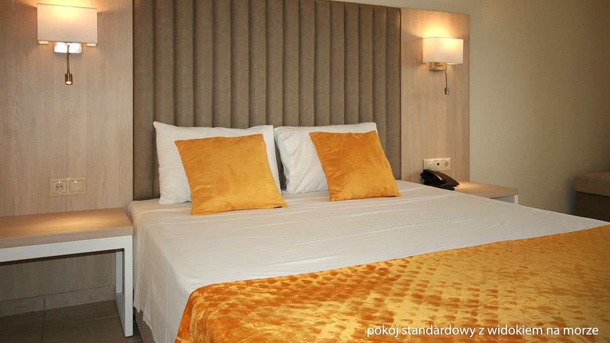 standardowy: 2-os. (możliwość 1 dostawki), ok. 22 m² odnowiony, klimatyzowany, łazienka (wanna lub prysznic, wc; suszarka), internet bezprzewodowy, telewizja satelitarna, telefon, lodówka, sejf; bezpłatne łóżeczko dla dziecka do 2 lat na zamówienie przed przyjazdem; balkon (stolik i krzesełka), widok na ogród; widok na morze za dopłatą; superior: 2-os. (możliwość 1 lub 2 dostawek dla dzieci), ok. 30 m², odnowiony, klimatyzowany, łazienka (wanna lub prysznic, wc; suszarka), internet bezprzewodowy, telewizja satelitarna, telefon, lodówka, sejf; bezpłatne łóżeczko dla dziecka do 2 lat na zamówienie przed przyjazdem; balkon (stolik i krzesełka), widok na morze; pokój superior za dopłatą; rodzinny: dla maks. 4 os. dorosłych (dostawki - 2 łóżka pojedyncze), ok. 45 m², dwa pomieszczenia, odnowiony, klimatyzowany, łazienka (wanna lub prysznic, wc; suszarka), internet bezprzewodowy, telewizja satelitarna, telefon, lodówka, sejf; bezpłatne łóżeczko dla dziecka do 2 lat na zamówienie przed przyjazdem; balkon (stolik i krzesełka), widok na ogród; pokój rodzinny za dopłatą.