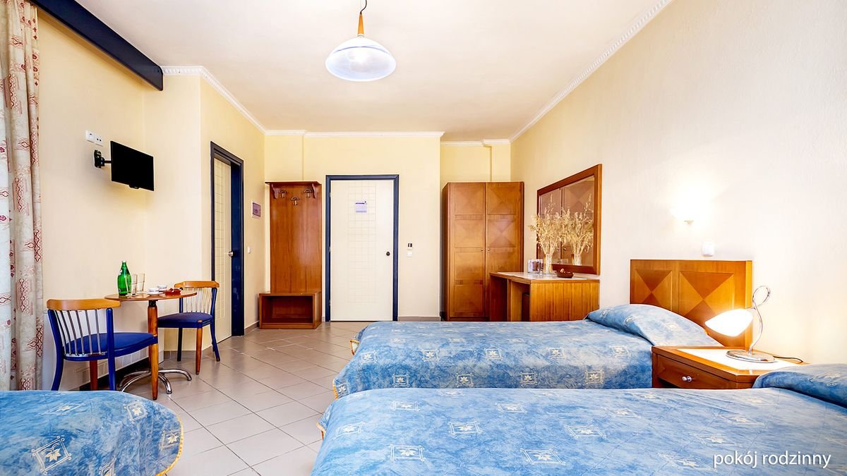 Kolorowy, położony w malowniczym miejscu i otoczony sosnowym lasem, jest szczególnie polecany na rodzinne wakacje. Na najmłodszych czekają wodne szaleństwa w basenie, zabawa w miniklubie i na minidisco, cała rodzina będzie świetnie bawić się podczas hotelowych animacji. Okolica sprzyja aktywności, więc zagraj w koszykówkę czy siatkówkę plażową lub wypożycz rower i wybierz się na wycieczkę po Pefkochori, podziwiaj miejscowe krajobrazy, urokliwe bielone domy w otoczeniu gajów oliwnych i ciesz się każdą chwilą spędzoną w słonecznej Grecji!