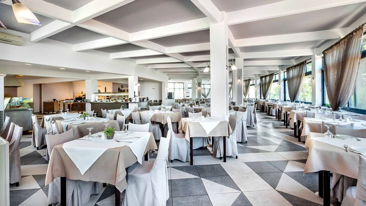śniadanie (7.00-10.30), obiad (13.00-14.00), kolacja (18.30-21.00) w formie bufetu w restauracji głównej; napoje bezalkoholowe i lokalne napoje alkoholowe (10.00-23.00) w barze; wymagane noszenie opasek all inclusive.