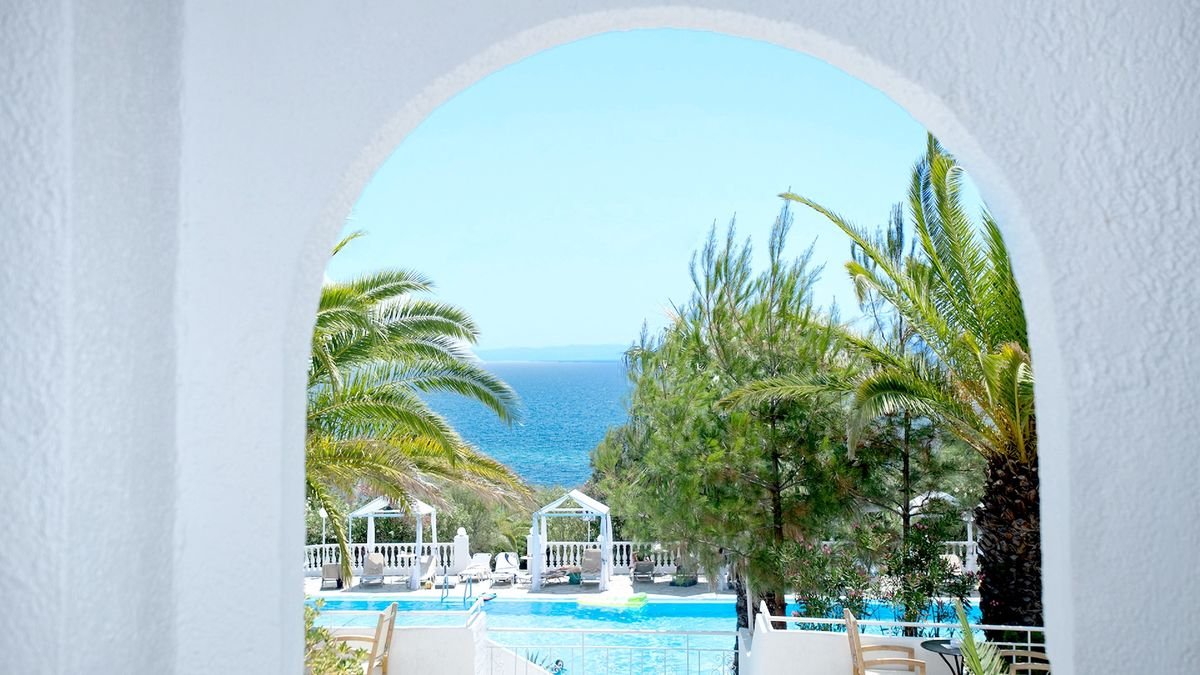 Wymarzone miejsce na pełen relaks w greckich klimatach słynnego „trójpalczastego” półwyspu Chalkidiki, którego częścią jest niezwykła Sithonia. Pięknie odnowiony, utrzymany w nowoczesnej kolorystyce jest lubiany za wspaniałą obsługę, komfort wypoczynku i spektakularne położenie z cudnym widokiem na szmaragdowe morze i gaje oliwne oraz niesamowite zachody słońca, które podziwiać można z hotelowego tarasu.