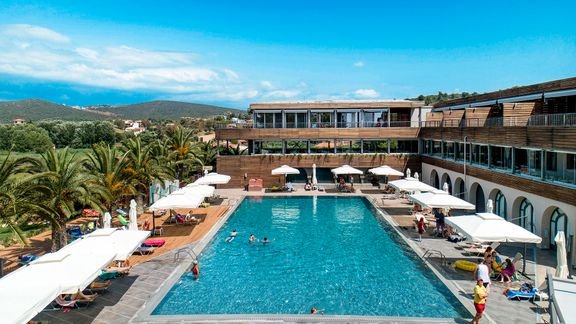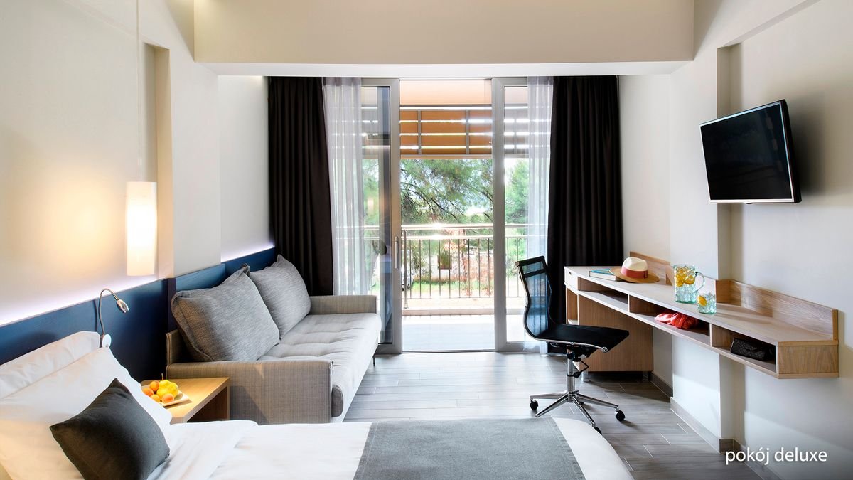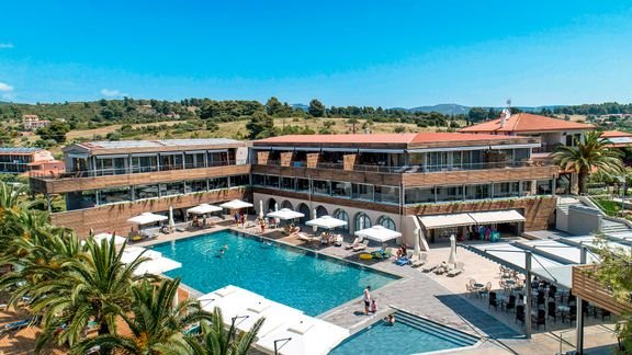 Fantastyczny dla rodzin, idealny na romantyczne wakacje we dwoje. Cudownie położony na półwyspie Sithonia tuż przy plaży wyróżnionej Błękitną Flagą, zachwyca nowoczesnym dizajnem i malowniczymi widokami na morze. Goście mają tu do dyspozycji eleganckie i przestronne, odnowione pokoje i suity, urządzone z dbałością o najmniejszy szczegół. W ciągu dnia można ochłodzić się w basenie, zadbać o ciało i ducha w hotelowym spa, skorzystać z oferty sportowej lub świetnie bawić się podczas animacji. Doskonały wybór na pełen relaks w komfortowych warunkach.