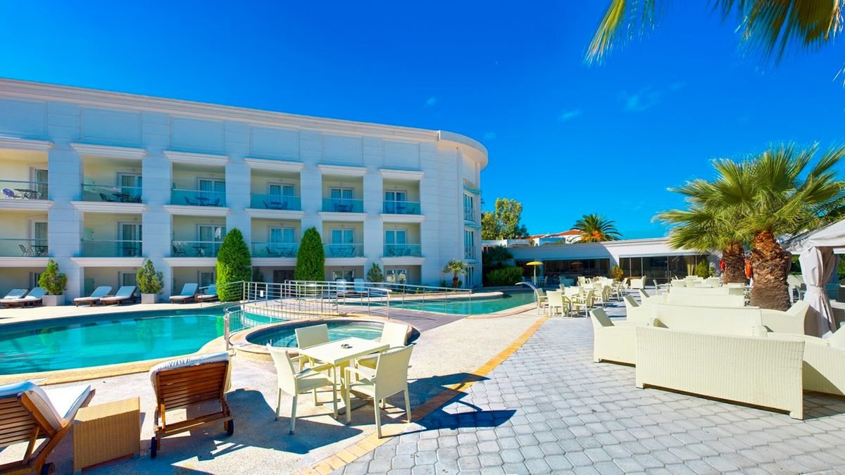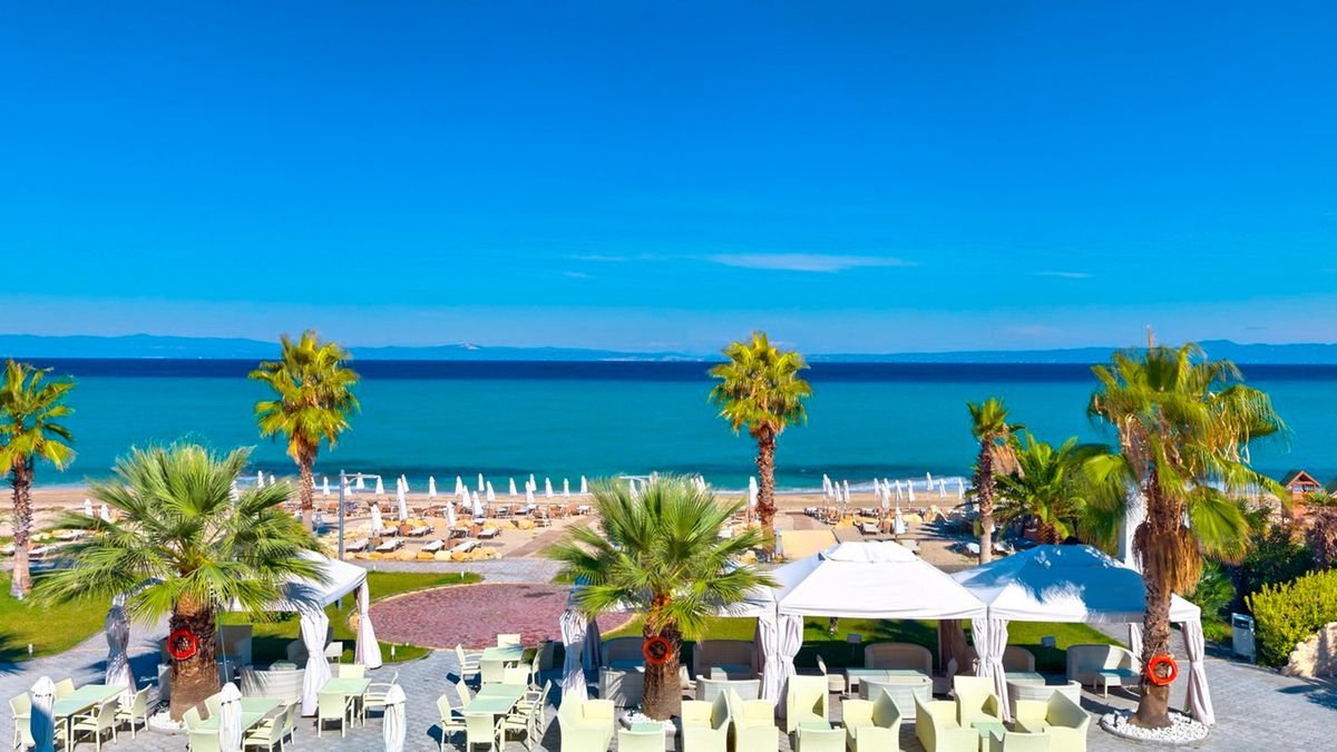 Spędź urlop na cudownym półwyspie Kassandra, w urokliwym Hanioti! Proponujemy przyjemny i stylowy hotel w spokojnym otoczeniu, w którym wygodnie odpoczniesz w eleganckich pokojach z balkonem lub tarasem i widokiem na ogród. Czas płynie tu leniwie, a chillować można do woli przy ciekawie zaprojektowanym basenie z tarasem z wygodnymi leżakami. Lubisz spędzać urlop aktywnie? Poćwicz w siłowni lub wybierz się na długi spacer. Tuż obok piękna plaża łagodnie opadająca do morza, więc można pluskać się do woli! W hotelu restauracja i bary, polecamy również wybrać się na kolację do lokalnych restauracji serwujących greckie specjały.