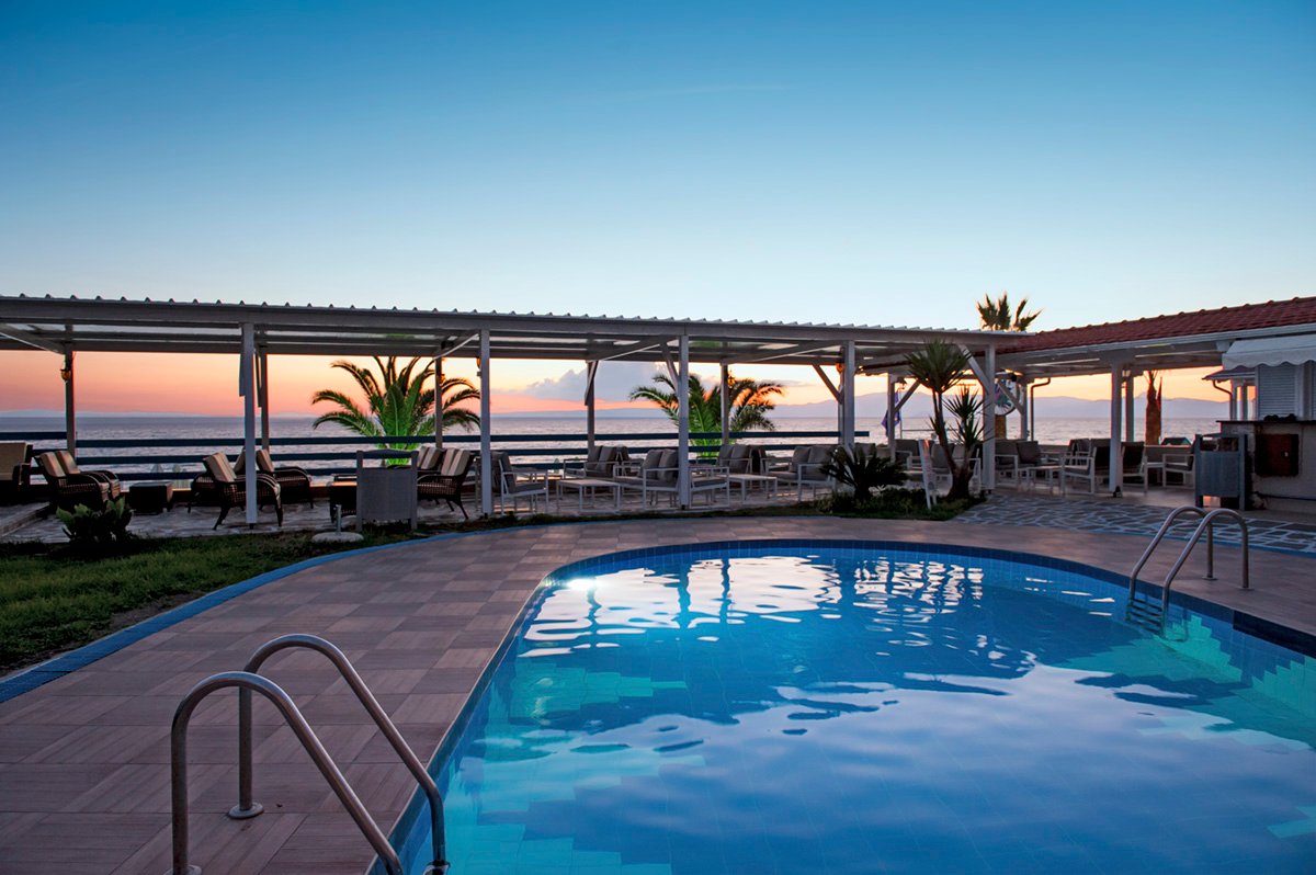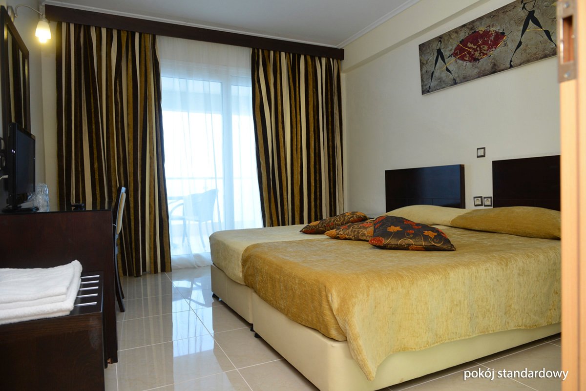 Idealne położenie bezpośrednio przy pięknej plaży, w centrum wakacyjnego kurortu sprawia, że hotel jest doskonałym miejscem na słoneczne, greckie wakacje. Do dyspozycji Gości są zadbane, klimatyzowane pokoje, skąpany w słońcu taras z widokiem na morze oraz basen. Niedaleko stąd są liczne sklepy, bary i restauracje, w których można skosztować lokalnych specjałów.
