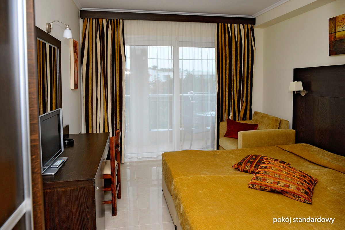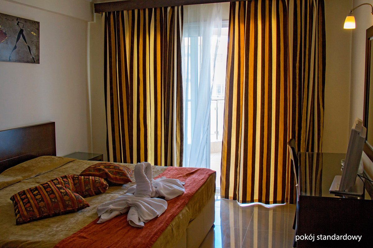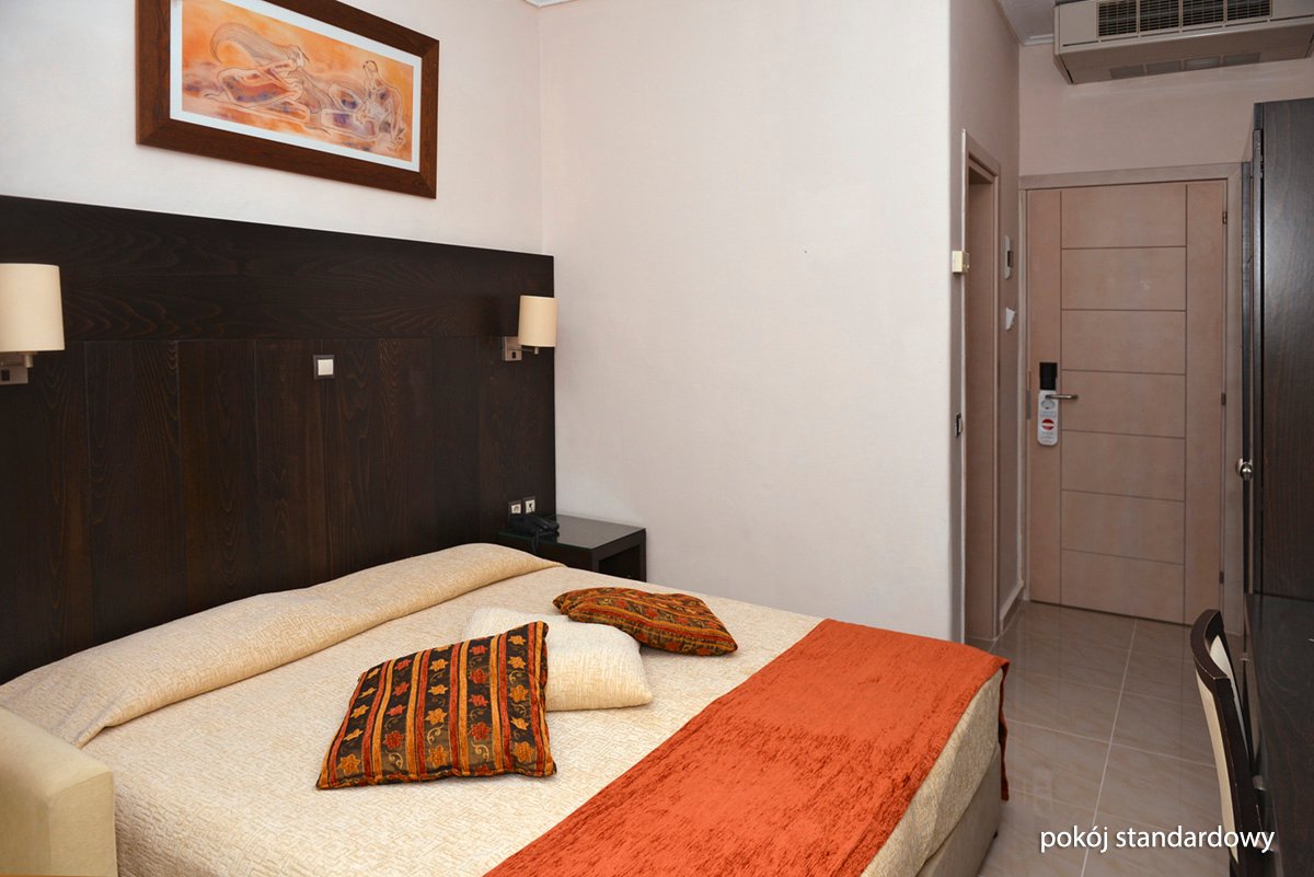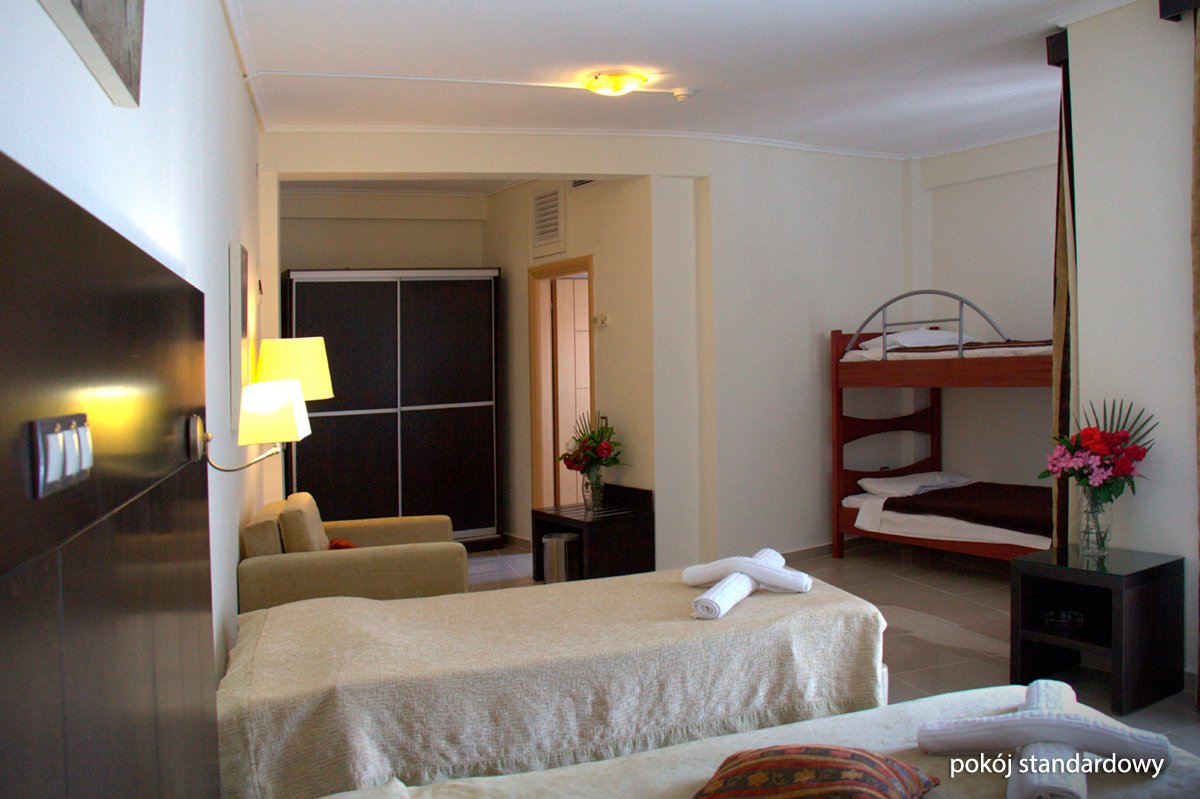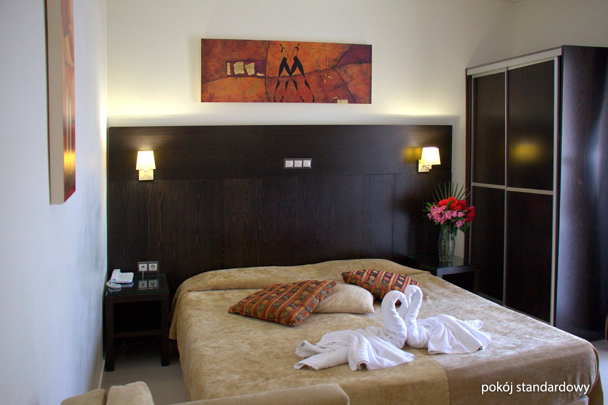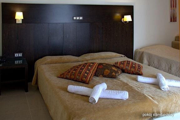 standardowy: 2-os. (możliwość 1 lub 2 dostawek dla dzieci - łóżko piętrowe), ok. 15-20 m², zadbany, klimatyzowany, łazienka (wanna lub prysznic, wc; suszarka), telewizja satelitarna, polski program, telefon, lodówka; za opłatą: sejf (ok. 1 EUR/dzień), internet bezprzewodowy (ok. 1 EUR/dzień); bezpłatne łóżeczko dla dziecka do 2 lat; balkon (stolik i krzesełka);