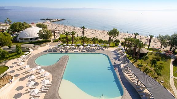 Położony na wschodnim wybrzeżu półwyspu Kassandra, jest idelanym miejscem zarówno na wakacje z rodziną, jak i dla amatorów nocnego życia. Niewielka odległość od turystycznej miejscowości Kalithea oraz od najpiękniejszej wioski w regionie – Afitos – sprawia, że to także doskonała baza wypadowa do zwiedzania okolicy. W hotelu na Gości czekają: basen z wydzieloną częścią dla najmłodszych, wygodne pokoje, restauracja serwująca smaczne dania oraz centrum spa z zabiegami i masażami. Doskonałą jakość usług gwarantuje firmująca hotel grupa GHotels. Wspaniałym dopełnieniem wypoczynku będą malownicze widoki – tutaj jest pięknie!