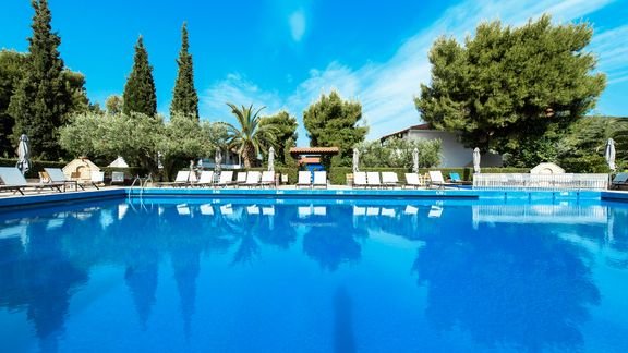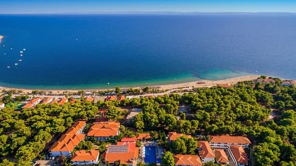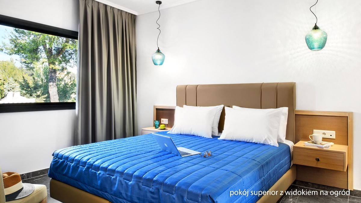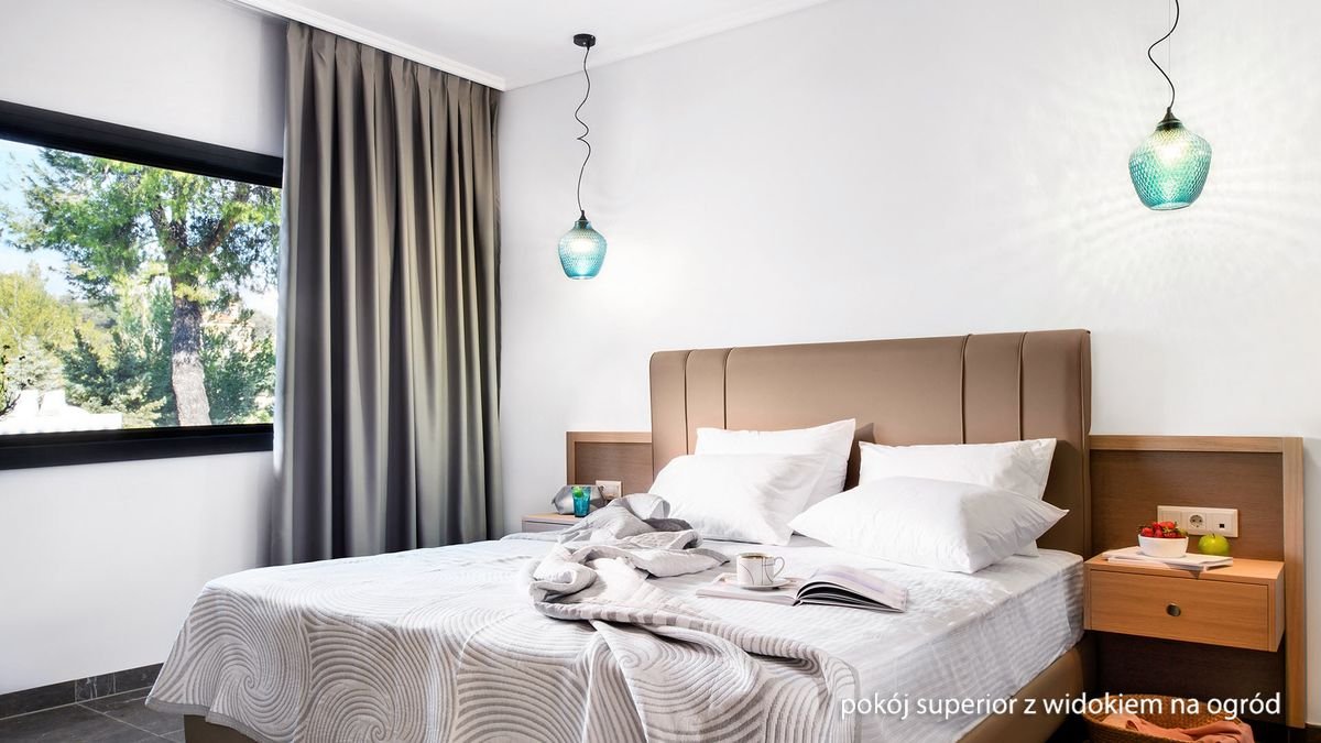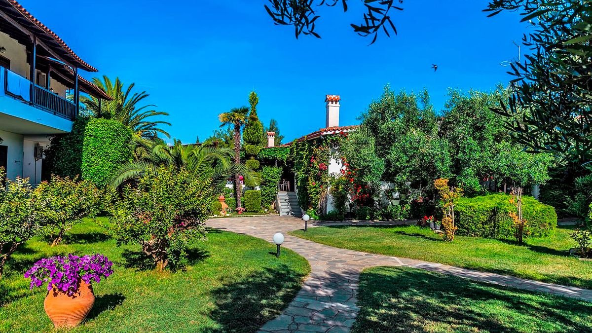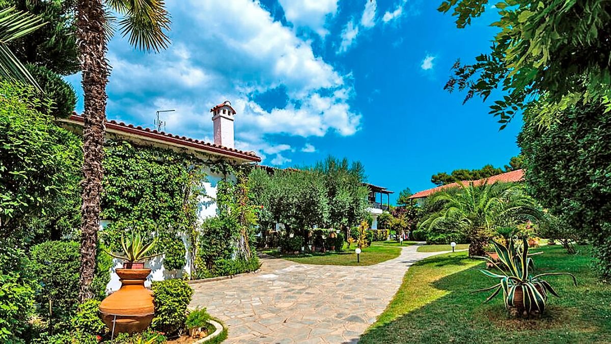 Elegancki, w greckim wakacyjnym stylu, zaprasza na piękne wakacje na Półwyspie Chalkidiki w malowniczym miejscu między Kassandrą i Sithonią. Położony między szmaragdowym morzem i górami w tle, otoczony zielonym ogrodem z białymi budynkami, zauroczy każdego przemiłą atmosferą, spokojem, zapachem pinii i cudnymi widokami. Pełen relaks czeka przy basenie i na niedalekiej plaży, miłośnicy pieszych wędrówek znajdą w okolicy przyjemne trasy spacerowe. Świetny wybór na wakacje z dala od tłumów i wypoczynek blisko natury.