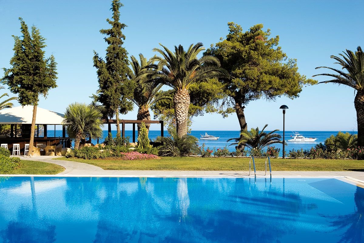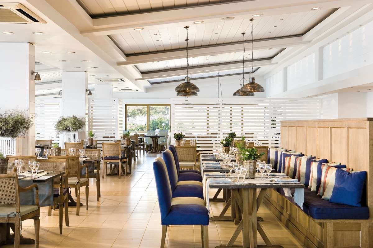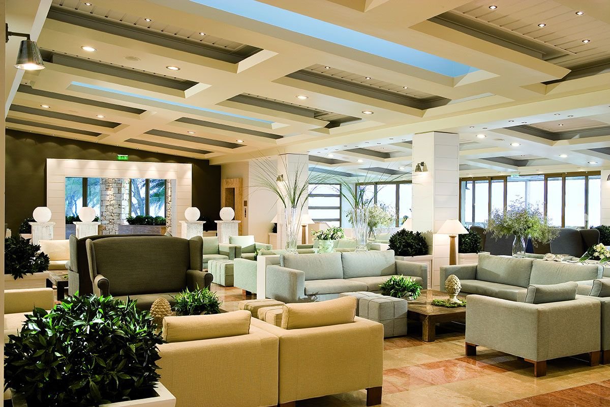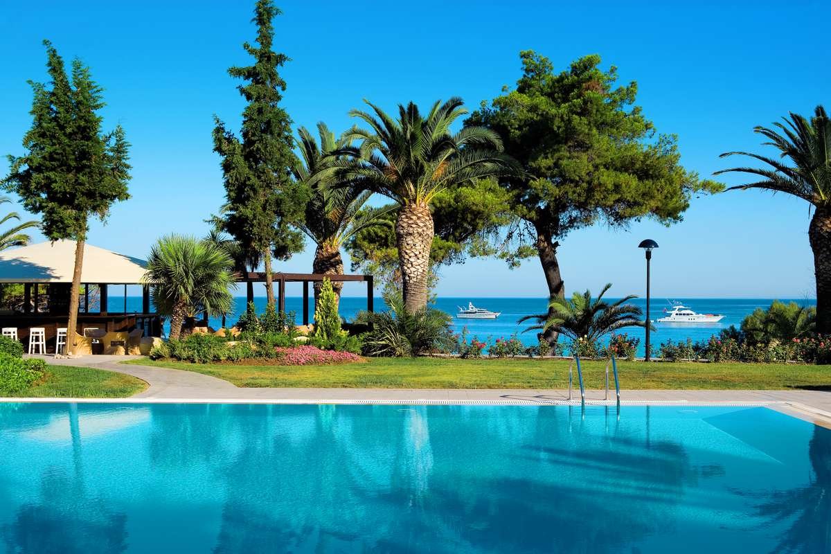 pięciogwiazdkowy, zbudowany w 2005 r., odnowiony w 2009 r., 205 pokoi, w szeregowych bungalowach, przestronne lobby, całodobowa recepcja, 3 restauracje: główna Olimpos - dania w formie bufetu, dania wegetariańskie, dostępne foteliki i menu dla dzieci, Ouzerie - à la carte, kuchnia grecka, Dunes - à la carte, kuchnia międzynarodowa i śródziemnomorska; 3 bary: longue bar w lobby, Dunes przy plaży, bar przy basenie, minimarket; taras z widokiem na morze, przepiękny ogród o powierzchni 10 tys. m² z bugenwillami i drzewami piniowymi; bezpłatny internet bezprzewodowy; akceptowane karty kredytowe: Visa, MasterCard, American Express, Diners Club.