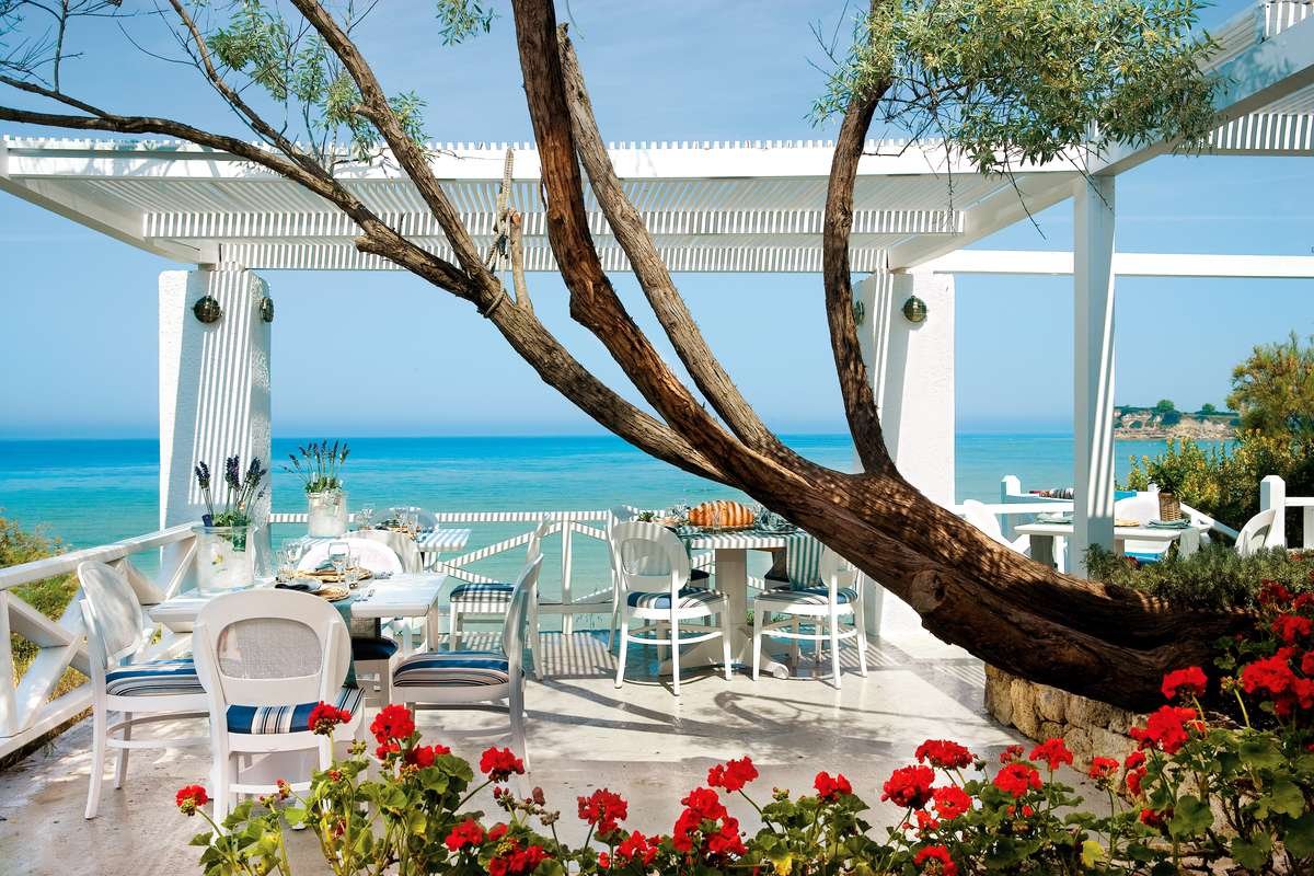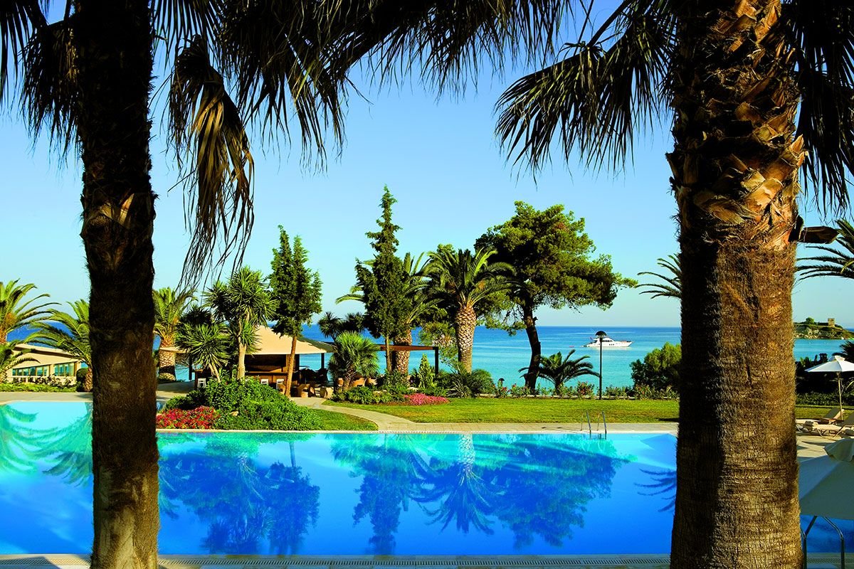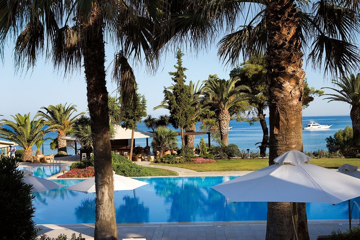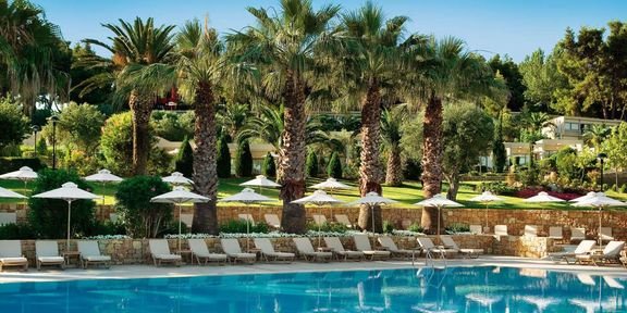 pięciogwiazdkowy, zbudowany w 2005 r., odnowiony w 2009 r., 205 pokoi, w szeregowych bungalowach, przestronne lobby, całodobowa recepcja, 3 restauracje: główna Olimpos - dania w formie bufetu, dania wegetariańskie, dostępne foteliki i menu dla dzieci, Ouzerie - à la carte, kuchnia grecka, Dunes - à la carte, kuchnia międzynarodowa i śródziemnomorska; 3 bary: longue bar w lobby, Dunes przy plaży, bar przy basenie, minimarket; taras z widokiem na morze, przepiękny ogród o powierzchni 10 tys. m² z bugenwillami i drzewami piniowymi; bezpłatny internet bezprzewodowy; akceptowane karty kredytowe: Visa, MasterCard, American Express, Diners Club.