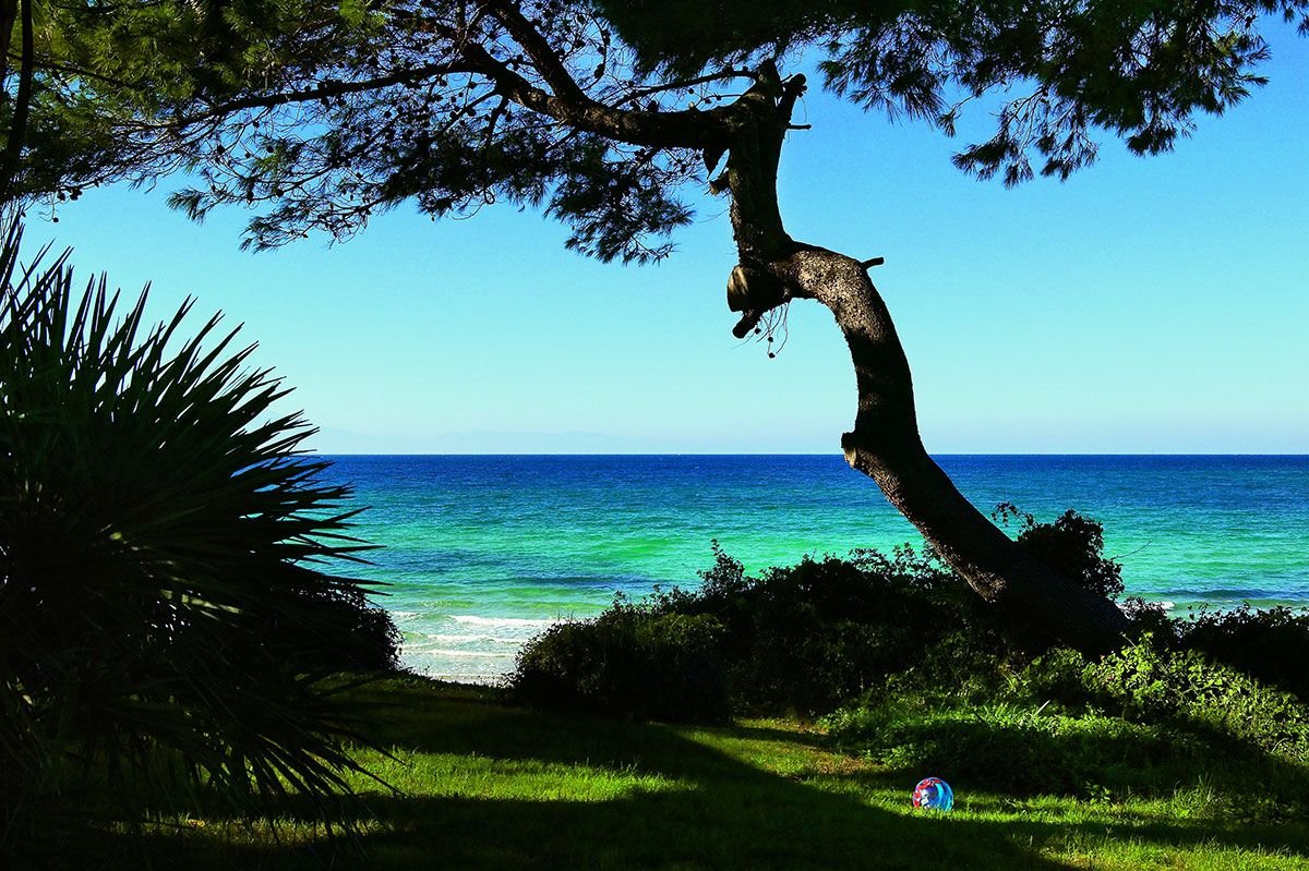 ok. 500 m od centrum miejscowości SANI, ze sklepami, tawernami i barami, w rozległej zatoce łagodnie opadającej do morza; ok. 70 km od portu lotniczego w Salonikach.