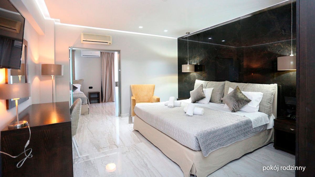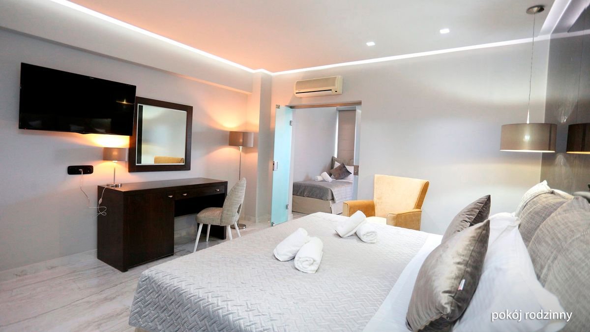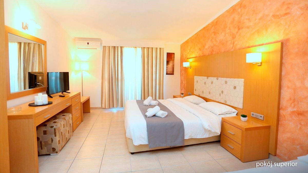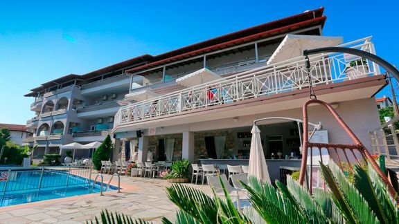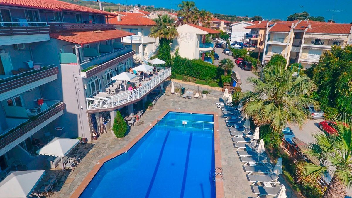 Położony na najbardziej wysuniętym na zachód palcu Chalkidiki – półwyspie Kassandra, w centrum urokliwego miasteczka z klimatycznymi tawernami, zaprasza na iście greckie wakacje z rodziną! Goście mogą spędzać tu czas pływając w dużym basenie, kosztując lokalnych przysmaków w hotelowej restauracji z tarasem lub chłonąc promienie słońca na leżaku, a ci, którzy pragną zwiedzić okolicę mogą się tam dostać komunikacją miejską. Od pięknej plaży dzieli zaledwie kilka kroków – idealne miejsce na relaks i złapanie wakacyjnej opalenizny! Hotel oferuje kilka rodzajów pokoi, w tym rodzinne, które zapewnią pełen komfort wypoczynku po całym dniu pełnym wrażeń, a przyjazna obsługa umili pobyt w tym wspaniałym miejscu.