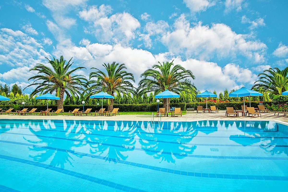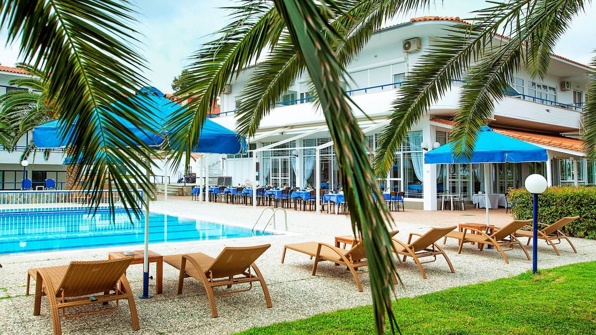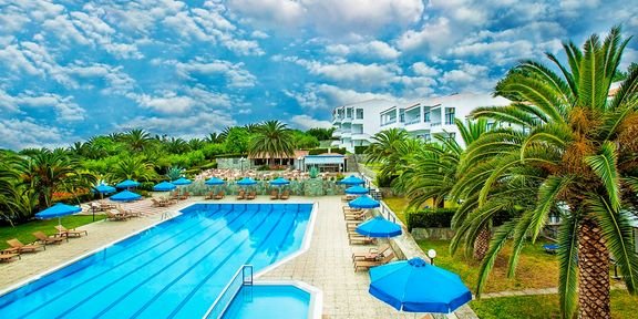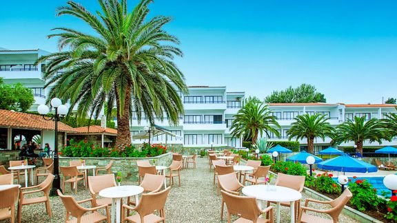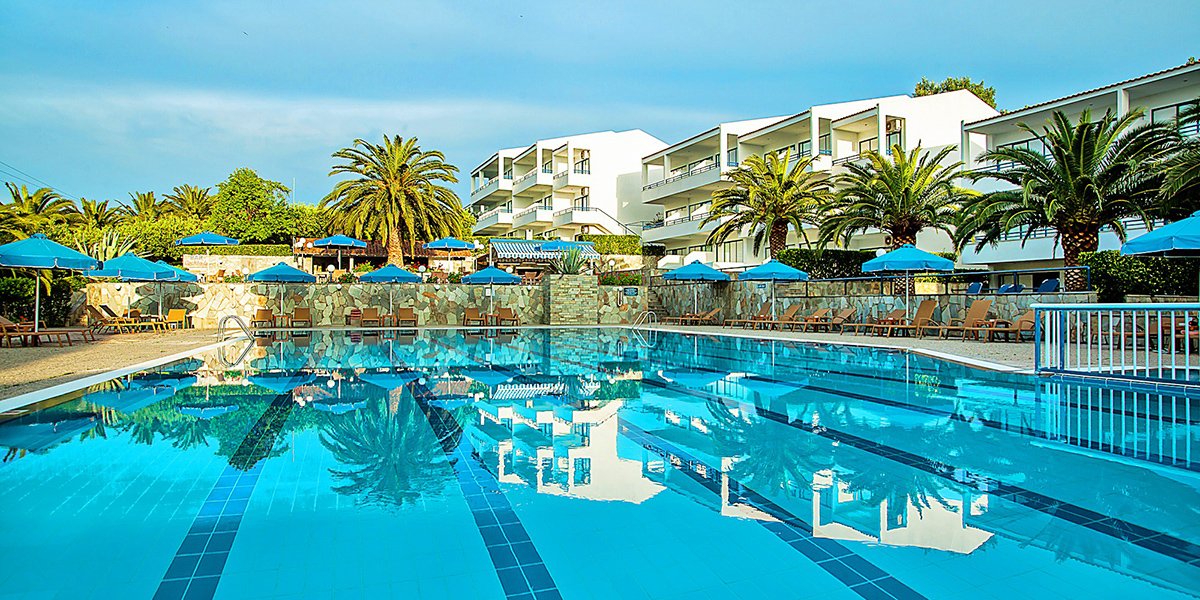 Położony w spokojnej okolicy, otoczony zielonymi wzgórzami, ma charakterystyczną białą zabudowę. Blisko jest stąd do złotej zatoki Toranaios. Na plażę Glarokavos można wygodnie dojechać bezpłatnym hotelowym busem. Zadbane pokoje są urządzone w jasnych kolorach. Na miejscu jest basen i bar, a w wysokim sezonie raz w tygodniu wieczór grecki.
