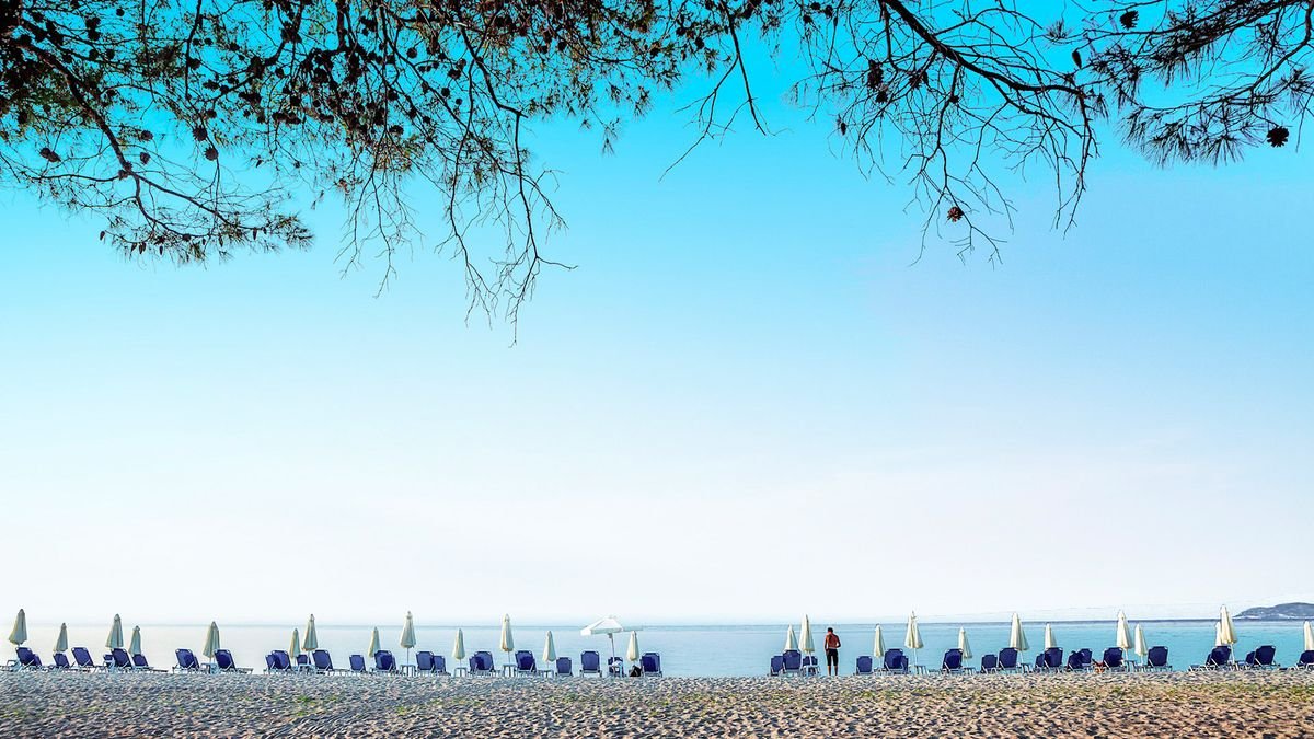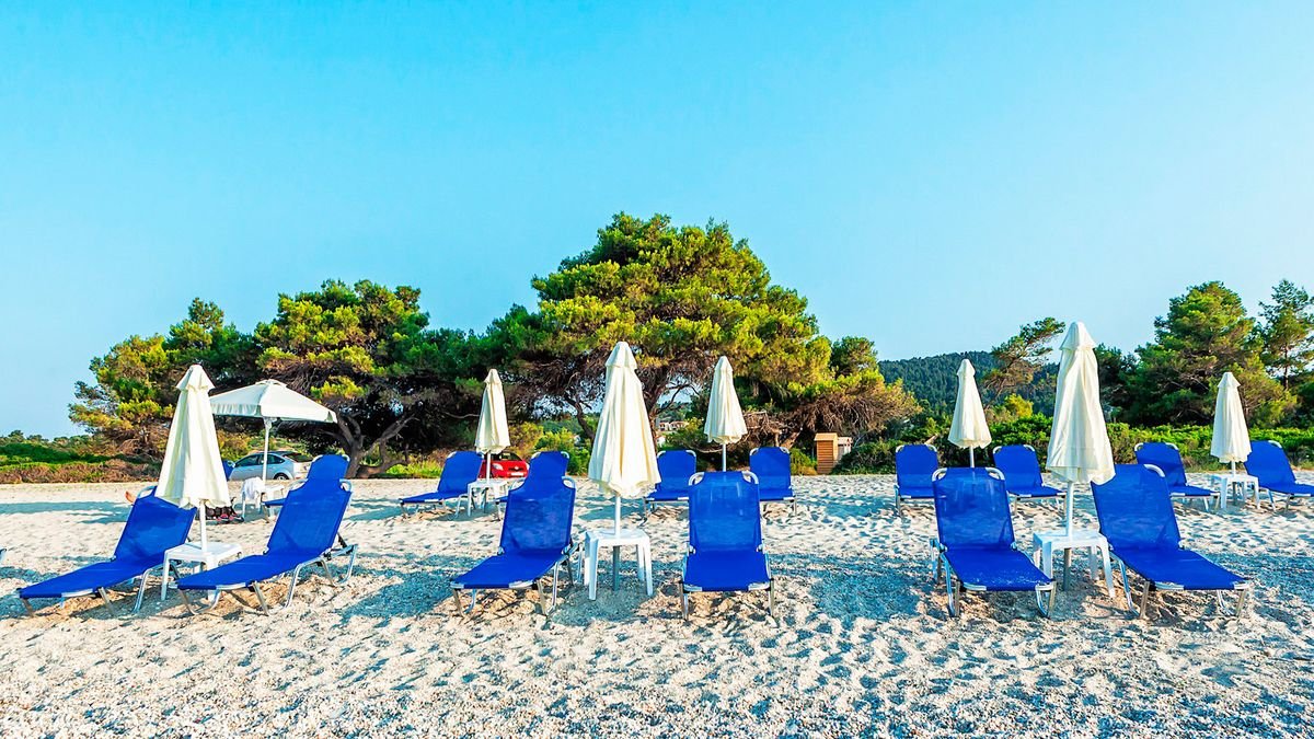 Glarokavos, publiczna, piaszczysta, ok. 800 m od hotelu, dojście drogą polną, bezpłatny bus hotelowy, serwis plażowy płatny; bar; Golden Beach, publiczna, piaszczysto-kamienista, ok. 1,3 km od hotelu, dojście ulicą i drogą polną, parasole i leżaki płatne.