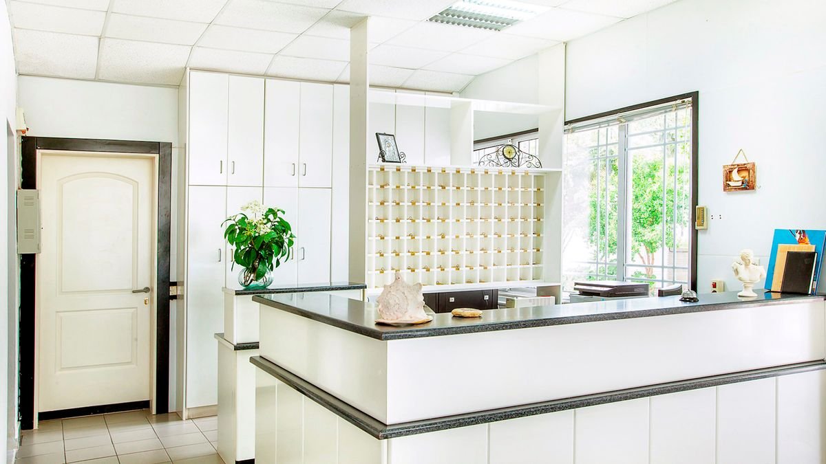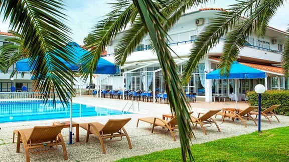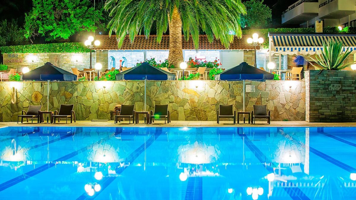trzygwiazdkowy, greckiej kategorii B, zbudowany w 1991 r., odnowiony w 2012 r., 92 pokoje, budynek główny – 2 piętra, lobby, całodobowa recepcja, restauracja – dania w formie bufetu, kuchnia międzynarodowa, dania wegetariańskie, bar przy basenie; bezpłatny internet bezprzewodowy w lobby; za opłatą: sejf w recepcji (ok. 2 EUR/dzień, 10 EUR/tydz.); na terenie hotelu występują różnice poziomów – nie jest polecany osobom z ograniczeniami ruchowymi; akceptowane karty kredytowe: Visa, MasterCard, American Express.