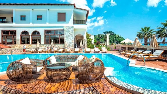 Przyjemny, kameralny hotel w spokojnym miejscu. Przepięknie położony tuż przy plaży, nad turkusowym morzem, jednocześnie blisko centrum Possidi z kilkoma sklepami, tawernami i barami. Znakomite miejsce na relaksujące greckie wakacje w luźnej atmosferze. Na miejscu basen, wygodne pokoje i popularna formuła all inclusive.