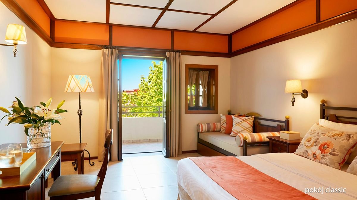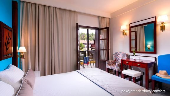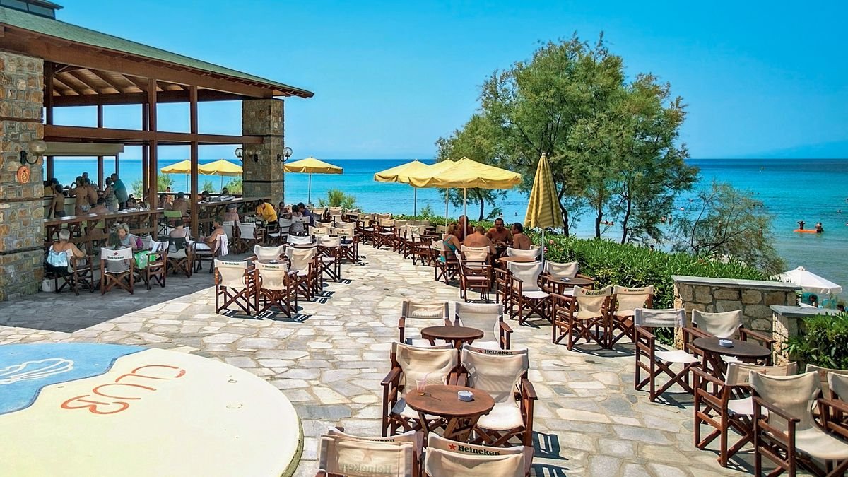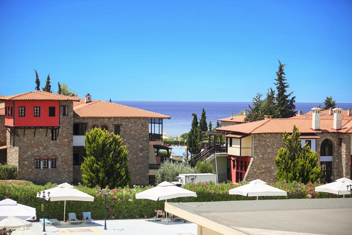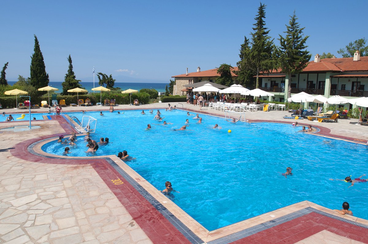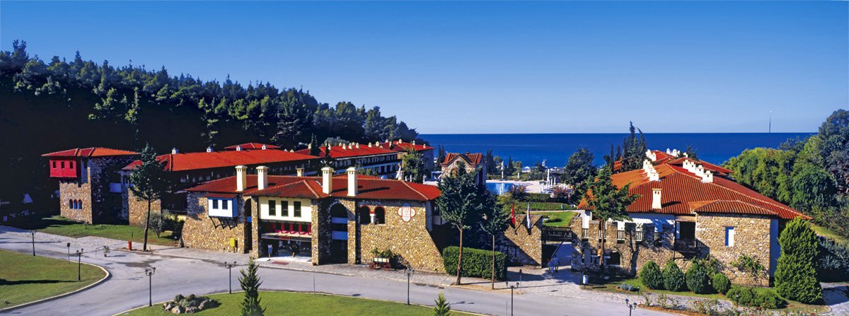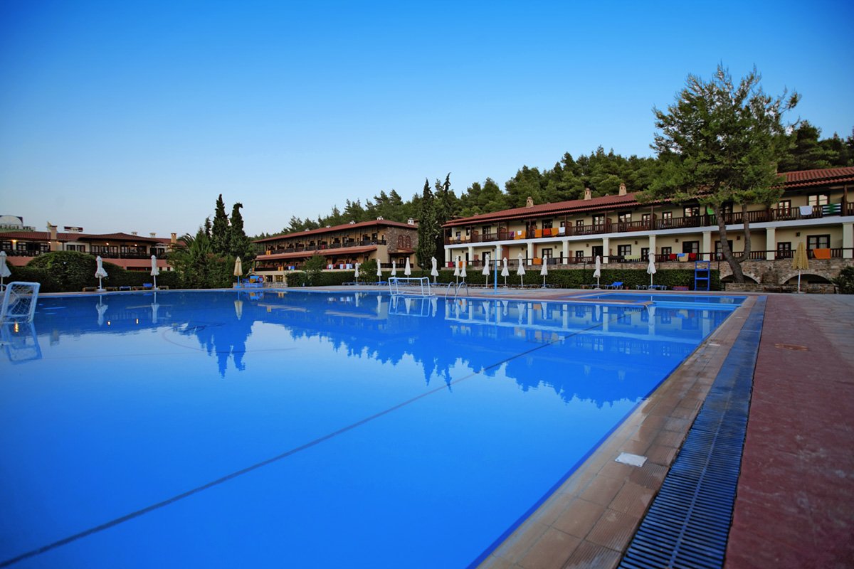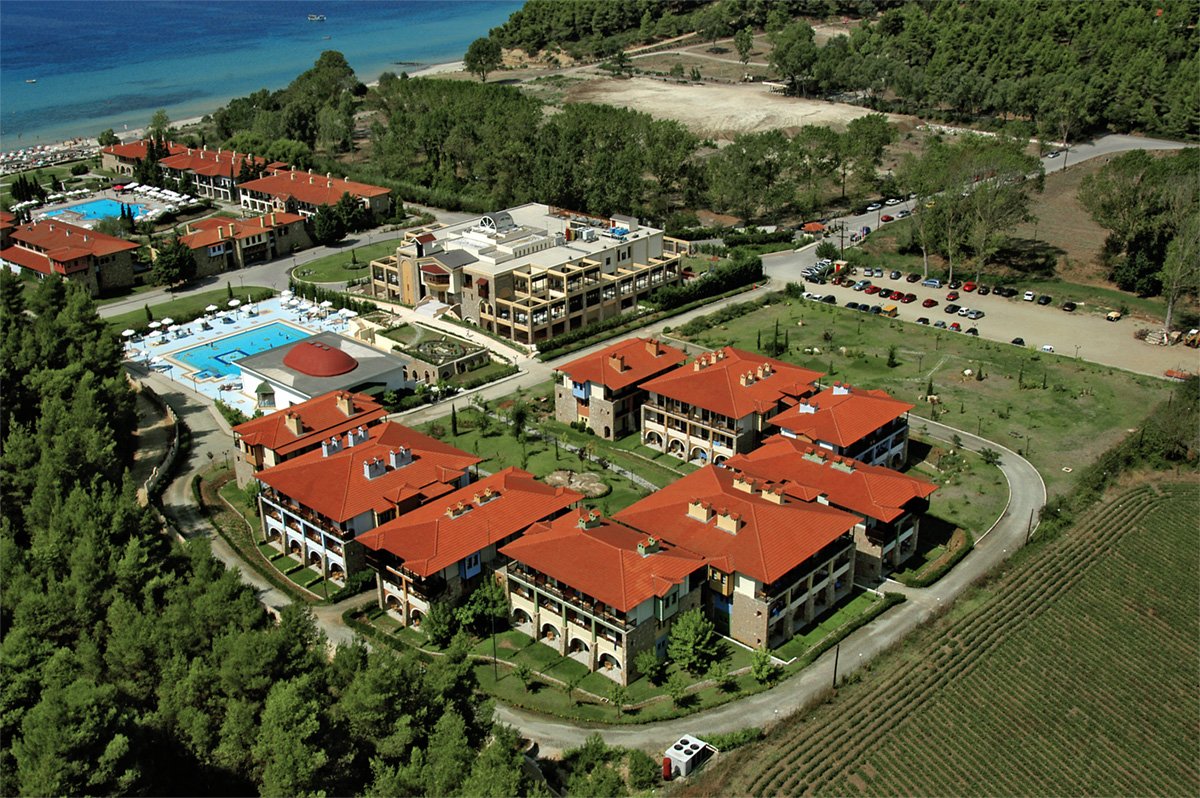 Otoczony lasem piniowym, położony w spokojnej okolicy, tuż przy pięknej, piaszczystej plaży w zatoce Sani, do której zejść można wprost z hotelowego ogrodu. Elegancki, urządzony w bizantyjskim stylu, z elementami kamienia i drewna, położony na rozległym terenie, jest wymarzonym miejscem na oderwanie się od codzienności i odpoczynek w gronie rodziny lub przyjaciół. Na miejscu mnóstwo możliwości spędzenia wolnego czasu: baseny, animacje, sporty wodne na plaży, siłownia, a nawet centrum spa z profesjonalnymi zabiegami i relaksującymi masażami. Hotel słynie również ze świetnej kuchni i miłej obsługi, która dba o to, aby każdy czuł się tutaj wyjątkowo.