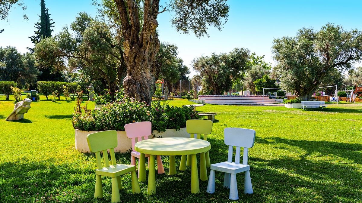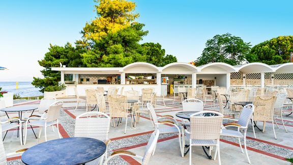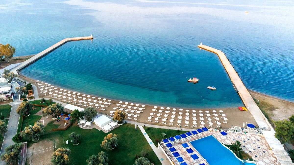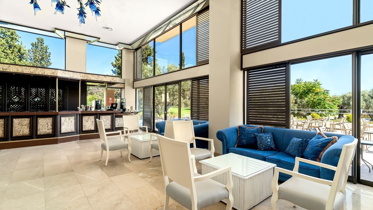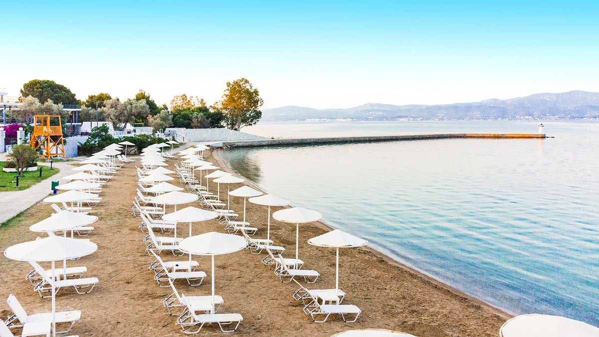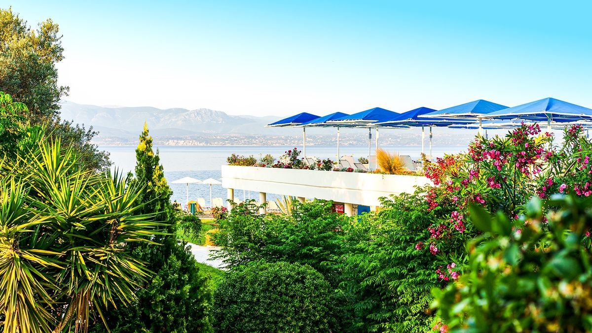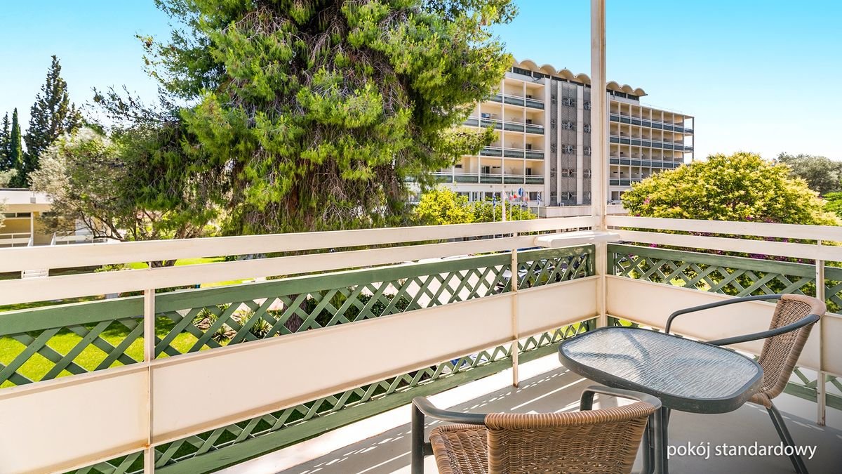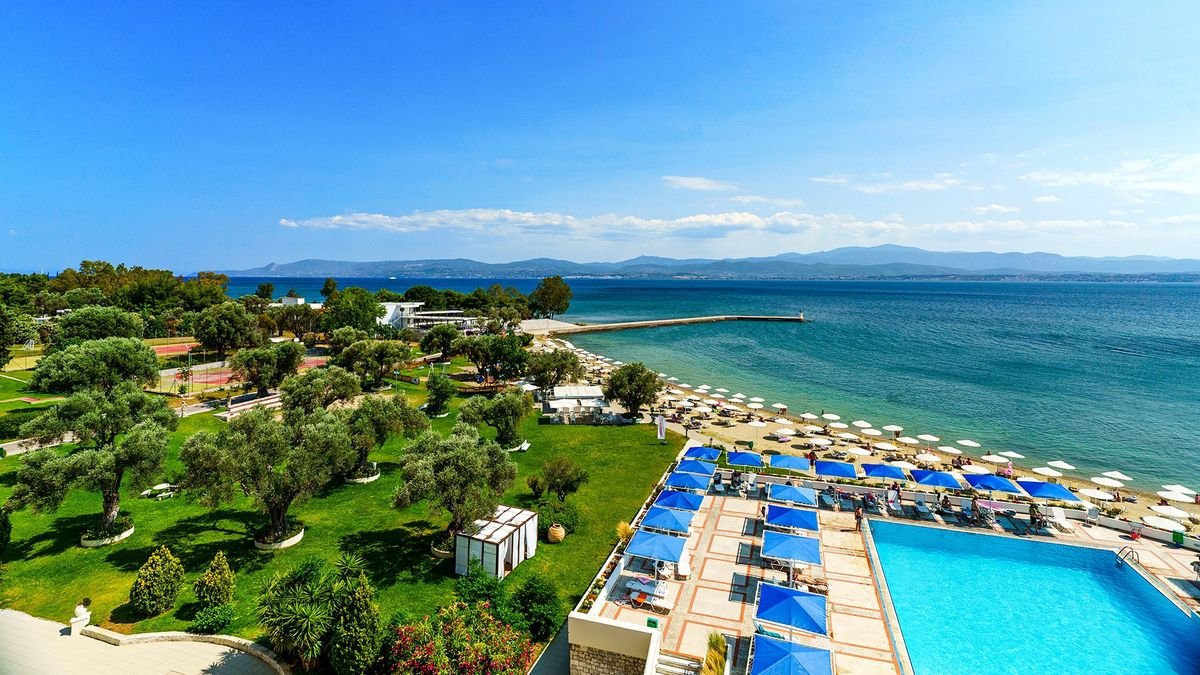 Świetnie położony i elegancki. Piękny hotelowy ogród z palmami, drzewkami oliwnymi i zadbanymi trawnikami prowadzi wprost na plażę. Z tarasu przy basenie podziwiać można cudowny, wyspiarski pejzaż, jak żywcem wzięty z wakacyjnej widokówki. Profesjonalnie prowadzony, z zawsze dyspozycyjną, wielojęzyczną obsługą, gwarantuje udane greckie wakacje w prawdziwie czterogwiazdkowym standardzie.