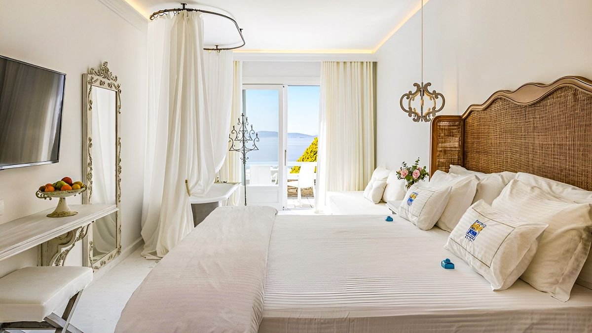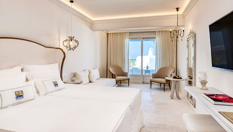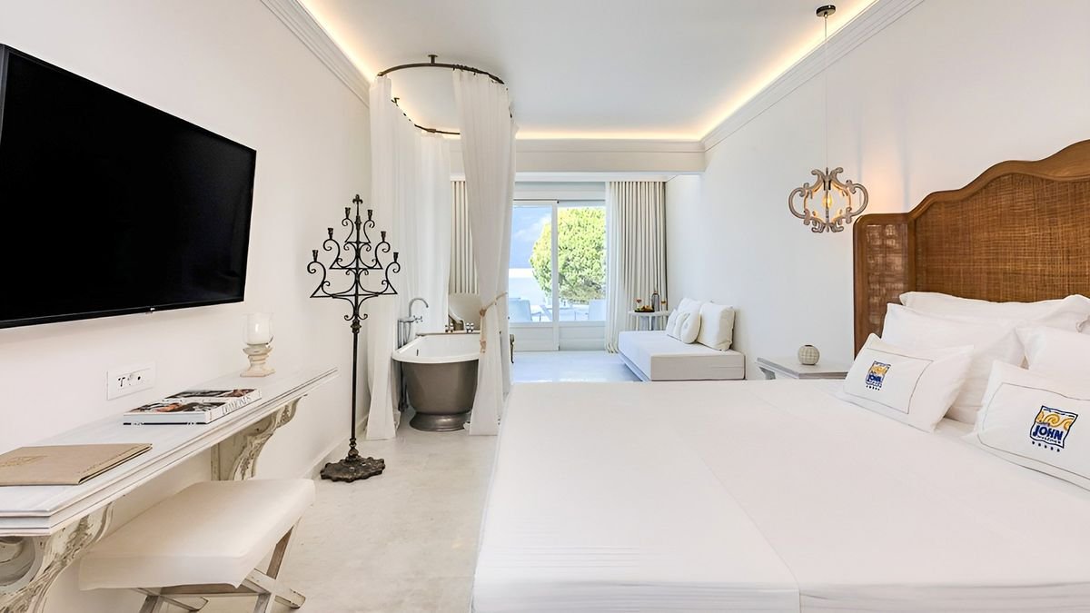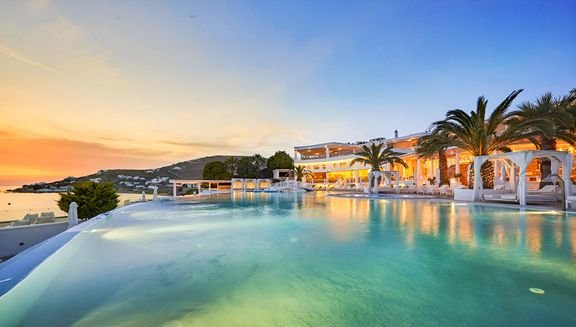 Zasmakuj prawdziwego luksusu na Mykonos – jednej z najpiękniejszych greckich wysp! Malowniczo położony, tuż przy plaży z bezpłatnym serwisem, jest doskonałą propozycją na romantyczny urlop we dwoje. Bajeczny widok na zatokę Agios Ioannis podziwiać tu można z restauracji i hotelowego basenu infinity, który zdaje się nie mieć końca i niemal łączyć z lazurowymi wodami Morza Egejskiego. Jasne, stylowo urządzone pokoje emanują spokojem i komfortem tworząc idealne warunki do wypoczynku, Gości zachwyca również wspaniała obsługa oraz kuchnia śródziemnomorska i międzynarodowa – pełna smaków, które zadowolą nawet najbardziej wymagających smakoszy. Zrelaksuj się w jacuzzi lub pozwól sobie na chwilę odprężenia w spa, a wieczorem odpocznij na tarasie i podziwiaj romantyczne zachody słońca – Mykonos czeka, by Cię oczarować.
