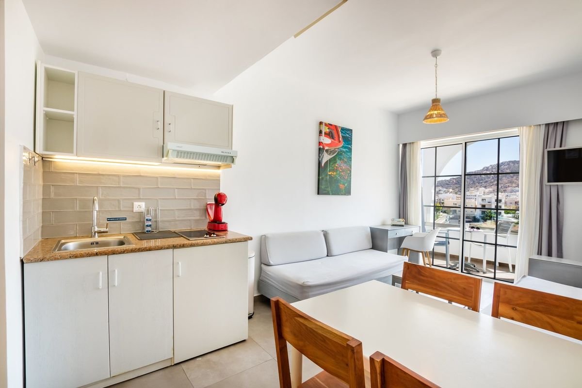 To idealna propozycja dla osób, które marzą o spokojnym wypoczynku blisko plaży! Kameralny, urządzony w jasnej kolorystyce, oferuje zakwaterowanie w stylowych apartamentach z wyposażonymi aneksami kuchennymi zapewniających pełną swobodę i niezależność – tu ugotujesz swoje ulubione posiłki o dowolnej porze dnia, a jeśli nie w głowie Ci gotowanie, w pobliżu znajdziesz wiele lokalnych tawern słynących z pysznych greckich specjałów. W ciągu dnia zaplanuj czas na kąpiel w morzu i relaks na leżaku, a po powrocie odpocznij przy lampce wina na tarasie z widokiem na morze. Prowadzony przez sympatyczną rodzinę dbającą o to, by każdy z Gości czuł się jak w domu, zyskał grono klientów, którzy chętnie tutaj wracają.
