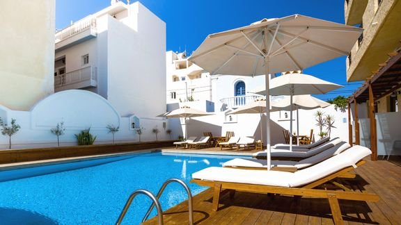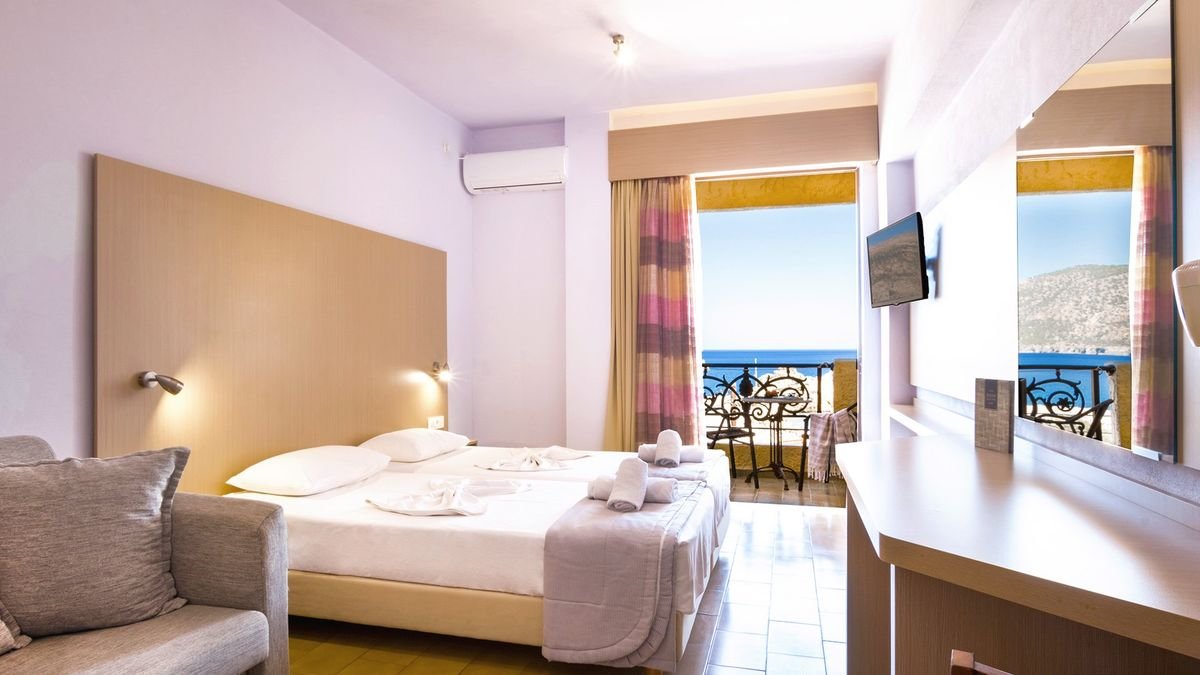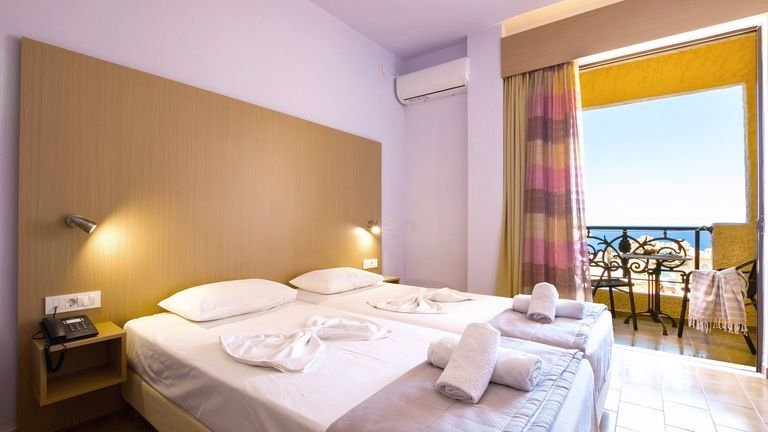 Kameralny, położony na greckiej wyspie Karpathos, która kusi spokojem, urokliwymi krajobrazami i tawernami pełnymi przysmaków. Niedaleko stąd do plaży, centrum i okolicznych atrakcji - Muzeum Archeologicznego Karpathos i ruin kaplicy Agia Fotini. Panoramiczny widok na błękit Morza Egejskiego i tylko 37 pokoi to kolejne atuty tego miejsca, a dodatkowo Goście znajdą tu także niewielki basen zewnętrzny, idealny na relaks.