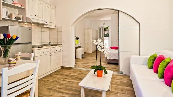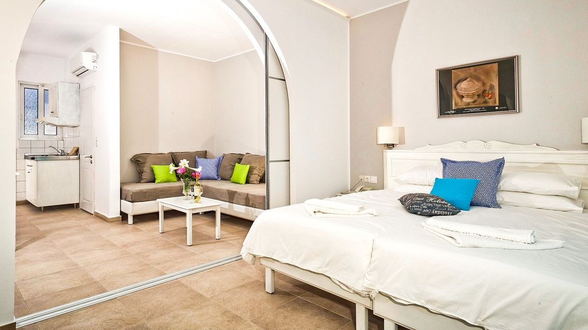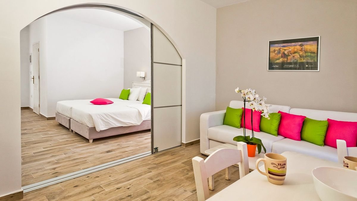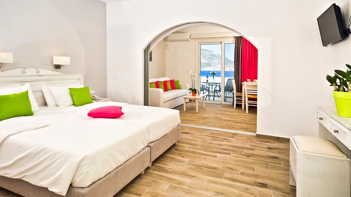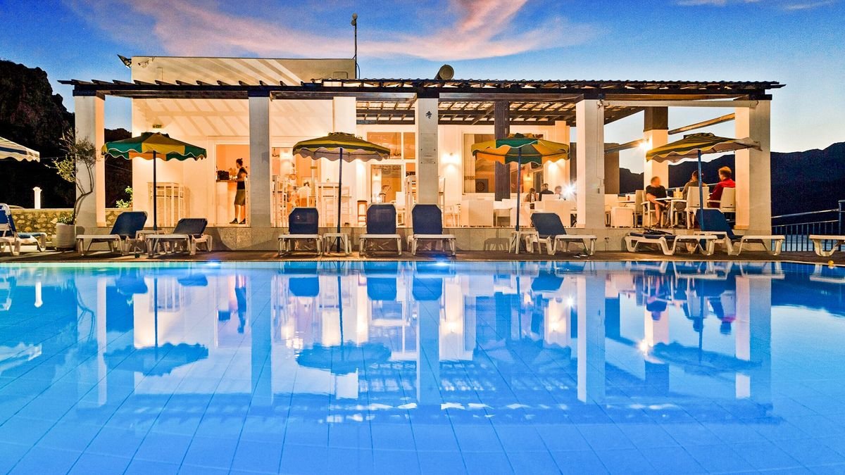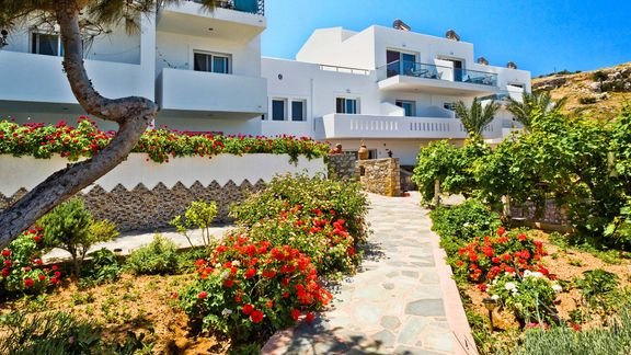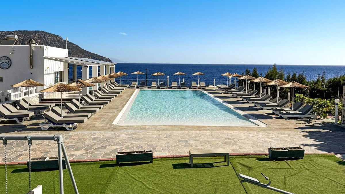Malowniczo położony w otoczeniu ogrodu porośniętego śródziemnomorską roślinnością i pachnącymi bugenwillami, z przepięknym widokiem na Morze Egejskie, zaprasza do spokojnego wypoczynku na greckiej wyspie Karpathos. To doskonały wybór zarówno dla par, jak i rodzin z dziećmi – czekają tu przestronne apartamenty z wyposażonym aneksem kuchennym gwarantujące pełen komfort, swobodę i niezależność. Na miejscu możesz popływać w basenie, opalać się na leżaku lub spędzić czas aktywnie, ćwicząc na siłowni czy grając w tenisa. Podczas pobytu koniecznie zaplanuj czas na zwiedzanie okolicy – w kilka minut spacerem dotrzesz stąd do centrum Pigadii i na pobliską plażę. Tutaj naprawdę odpoczniesz i odetchniesz od codziennych trosk – otoczony naturą, morzem i grecką gościnnością.
