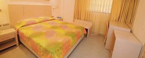 2-os. (możliwość 1 dostawki), indywidualnie sterowana klimatyzacja, telewizor, telefon, lodówka, łazienka; część pokoi z balkonami (za dopłatą).