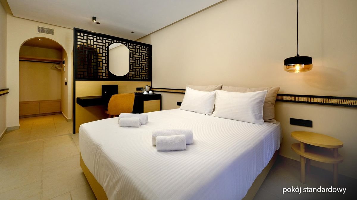 Pięknie położony tuż przy plaży z bezpłatnym serwisem, idealnie sprawdzi się na wypoczynek w gronie rodziny i przyjaciół. Na miejscu jest wszystko, co potrzebne do udanych wakacji: komfortowe pokoje, basen z wydzieloną częścią dla dzieci, wiele propozycji aktywności w ciągu dnia, a przede wszystkim… słońce i błękitne morze. Korzystaj z uroków lata na plaży, baw się podczas animacji, posłuchaj muzyki na żywo, zrelaksuj się w centrum wellness i podziwiaj malownicze zachody słońca z hotelowego tarasu. Na dzieciaków czekają zajęcia w miniklubie, plac zabaw i animacje.