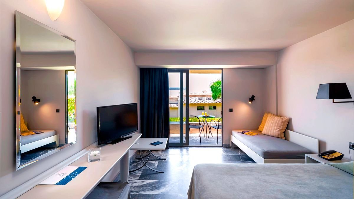 Rozległy kompleks bungalowów położony na wzgórzu, skąd rozpościera się malowniczy widok na zatokę. Otoczone pięknym oliwnym gajem niskie budynki zbudowane w kolonialnym stylu sprawiają, że panuje tu kameralna atmosfera. Komfortowe, stylowe pokoje zachwycają dbałością o detale, a przestronne pokoje rodzinne ucieszą spragnionych odpoczynku Gości podróżujących z dziećmi. Z myślą o najmłodszych przygotowano moc atrakcji, a dorosłych na relaks zaprasza fantastycznie zaprojektowany basen typu infinity, z którego można podziwiać błękitne morze. Całości dopełnia doskonała kuchnia.
