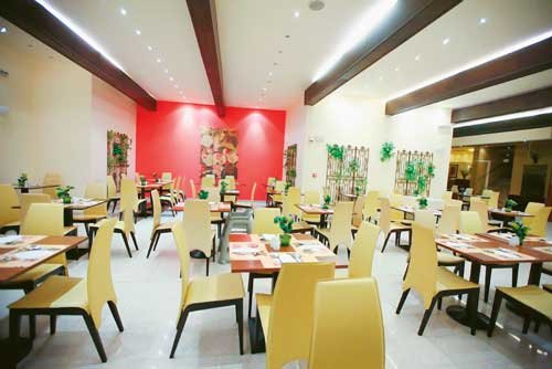 śniadanie (7.30-10.00), obiad (12.30-14.30), kolacja (19.00-21.00) w formie bufetu w restauracji; napoje bezalkoholowe i lokalne napoje alkoholowe w barze przy basenie (10.30-23.00) i w barze w lobby (17.00-1.00).