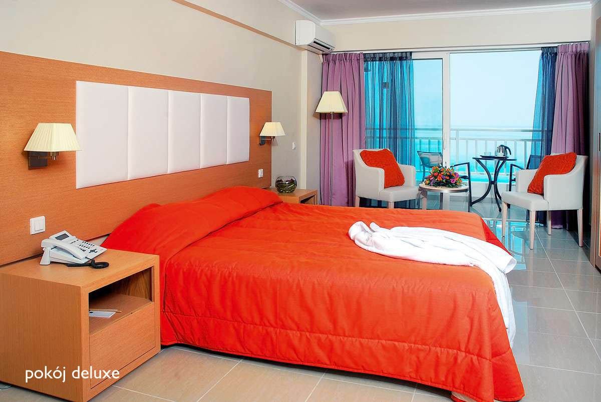 deluxe: 2-os. (możliwość 1 dostawki), 25 m², nowoczesny, luksusowy, indywidualnie sterowana klimatyzacja, łazienka (wanna lub prysznic, wc; suszarka), telewizja satelitarna LCD/DVD/HiFi, polski kanał, telefon, internet bezprzewodowy, lodówka, woda mineralna na powitanie, sejf (za opłatą: ok. 3 EUR/dzień); balkon (stolik i krzesełka, suszarka na pranie), widok na morze i basen; suite: 2-os. (możliwość 1 dostawki), 30 m², wyposażenie jak w pokoju standardowym, dodatkowo zestaw do kawy/herbaty, płaszcze kąpielowe i kapcie, w dniu przylotu wino, owoce i woda; pokój suite na zapytanie, za dopłatą.